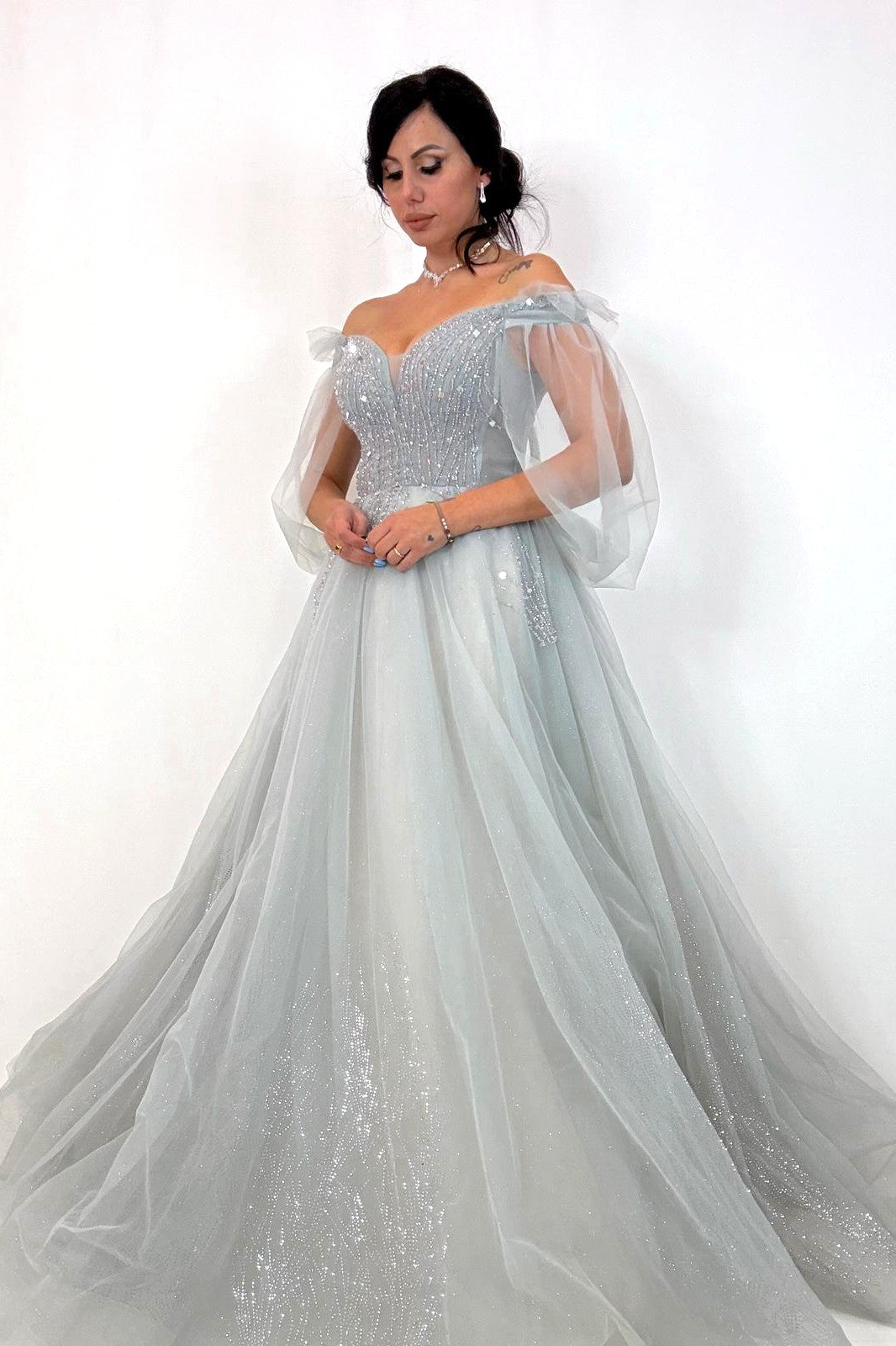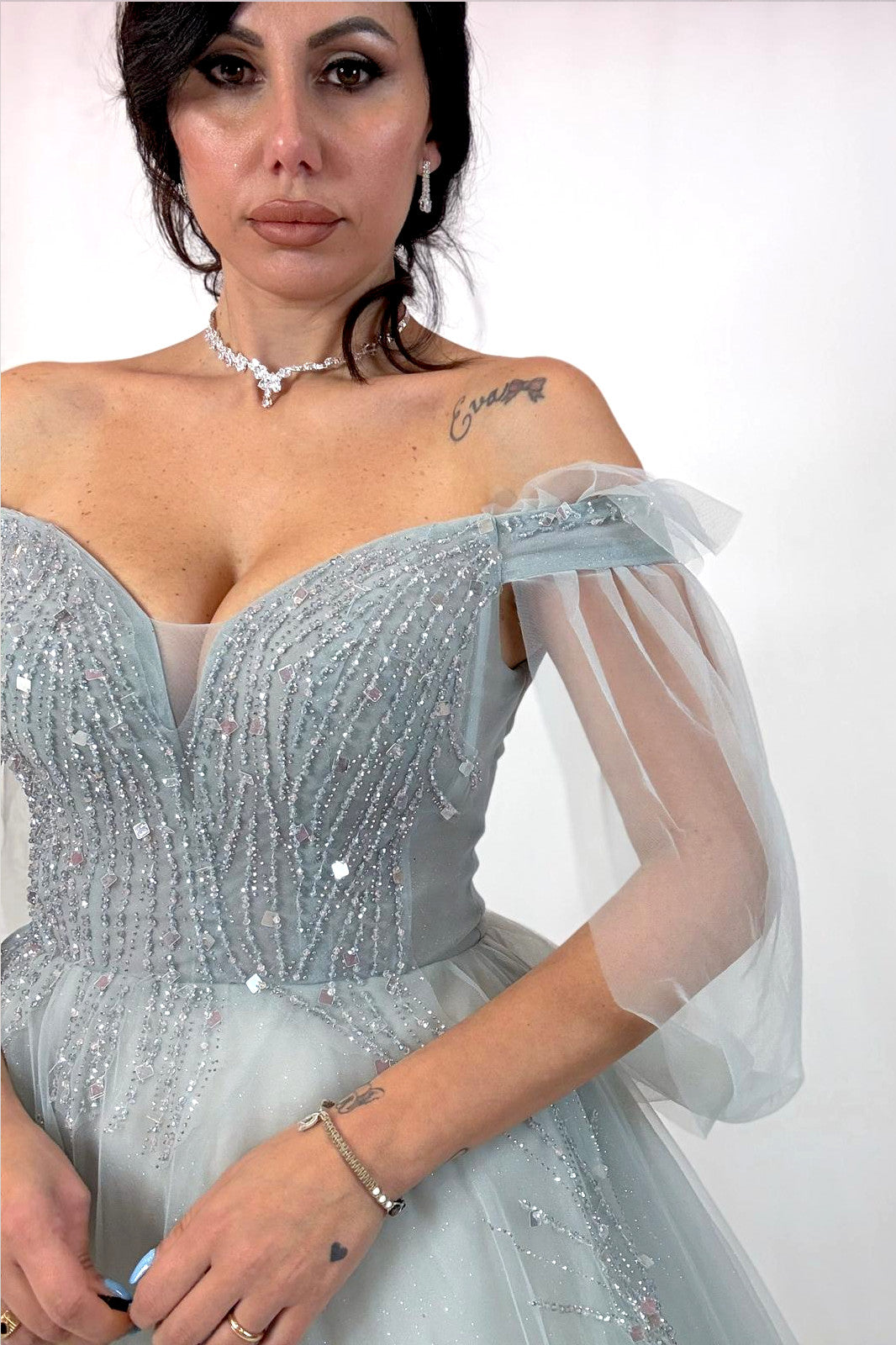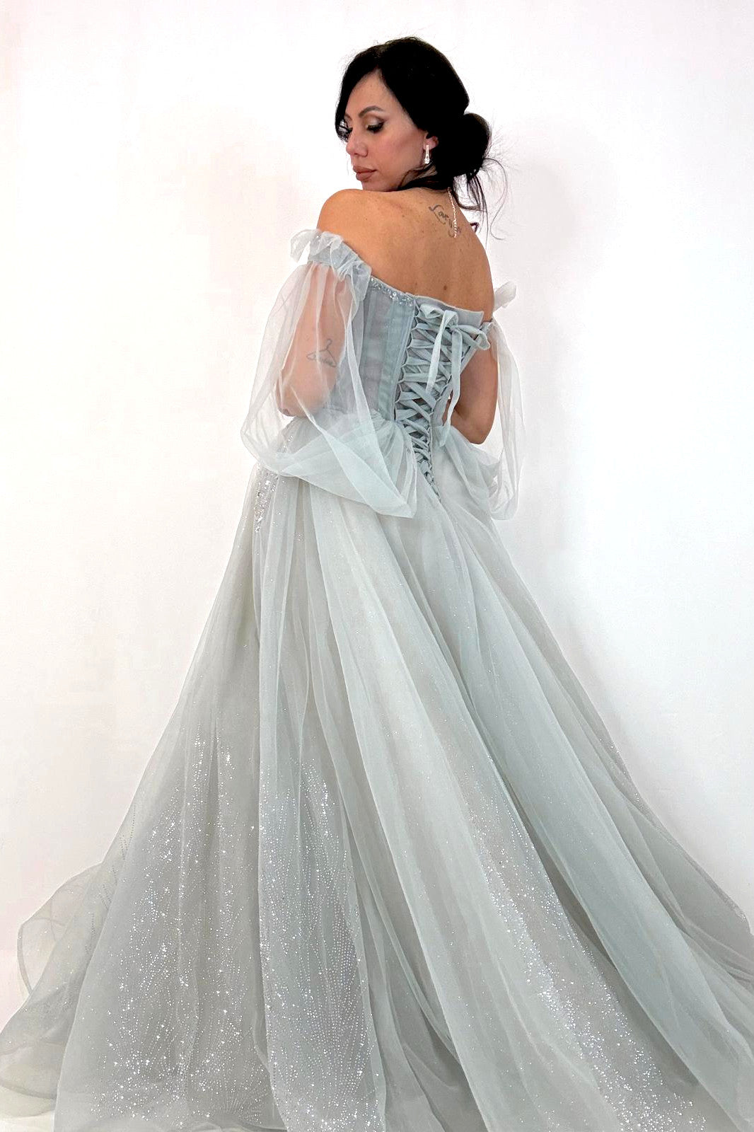 Abito da cerimonia principesco con gonna ampia, corpetto prezioso. In foto una S/M.