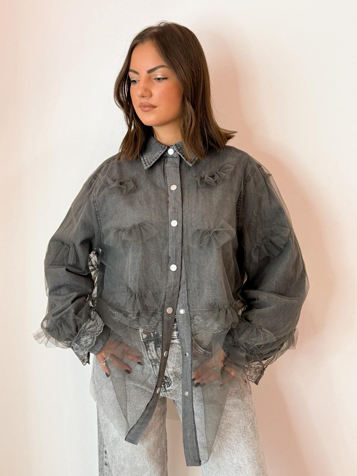 Camicetta doppio strato jeans e velo ,bottoni a clip su tutta la lunghezza
