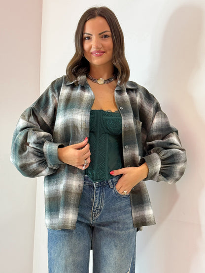 CAMICIA A QUADRI CON MANICA A SBUFFO E POLSINI CN BOTTONCINO , TAGLIA UNICA VESTE FINO L