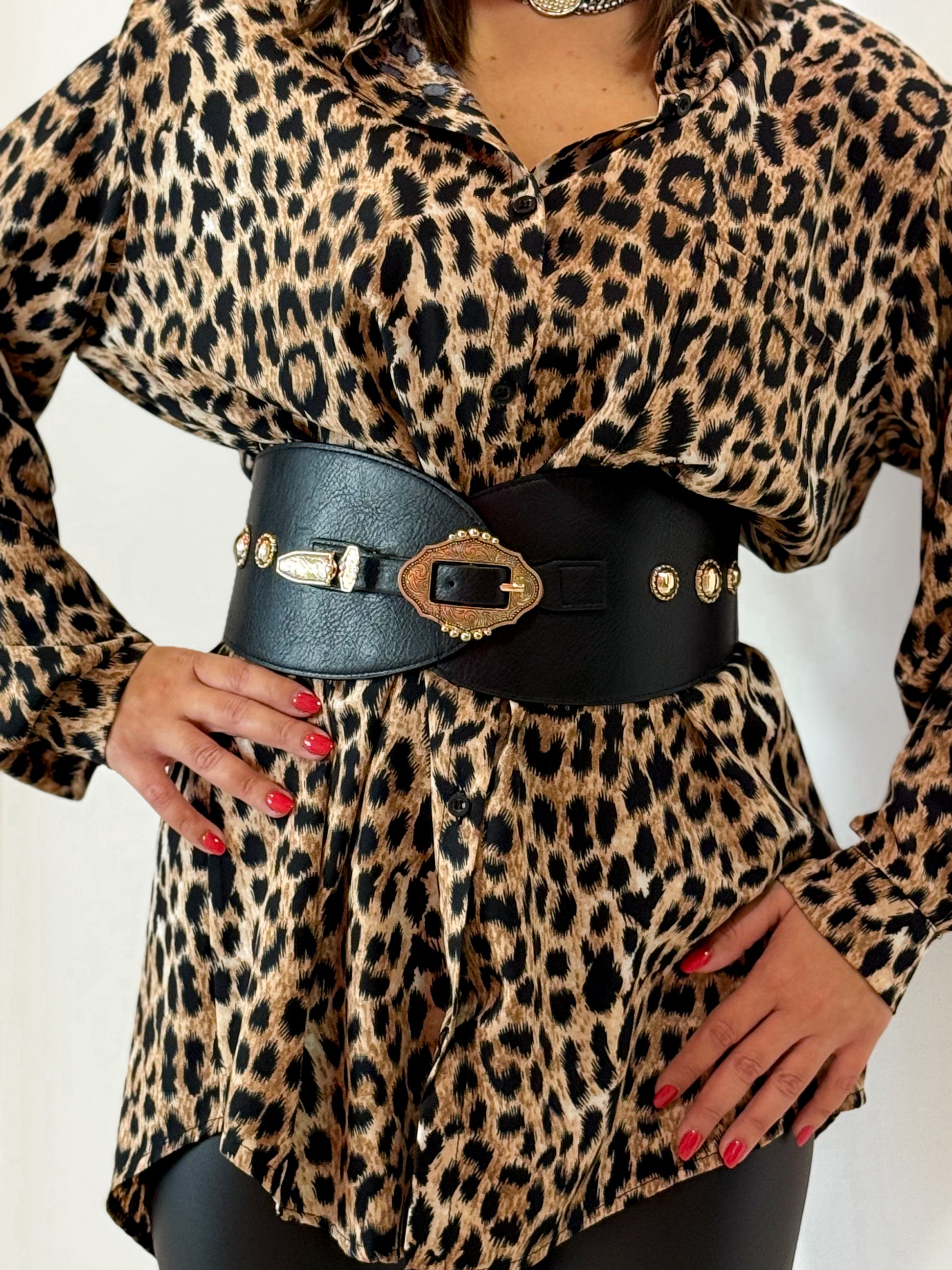 CINTURONE CON MOLLA , CHIUSURA IN SIMILPELLE CON APPLICAZIONI COLORO ORO