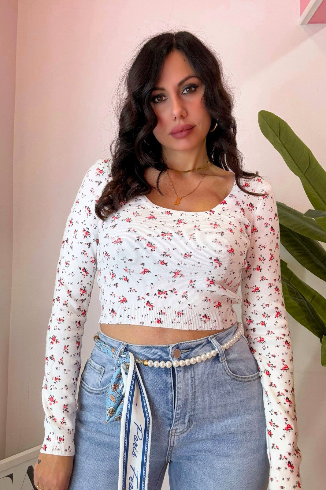 Maglia a costine crop, scollatura ampia, maniche lunghe. Taglia unica.