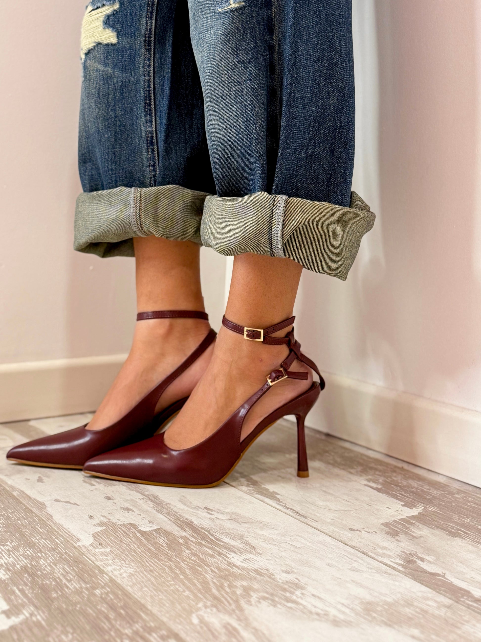 SCARPA MODELLO DECOLLETE CON PUNTA E CINTURINO REGOLABILE ALLA CAVIGLIA