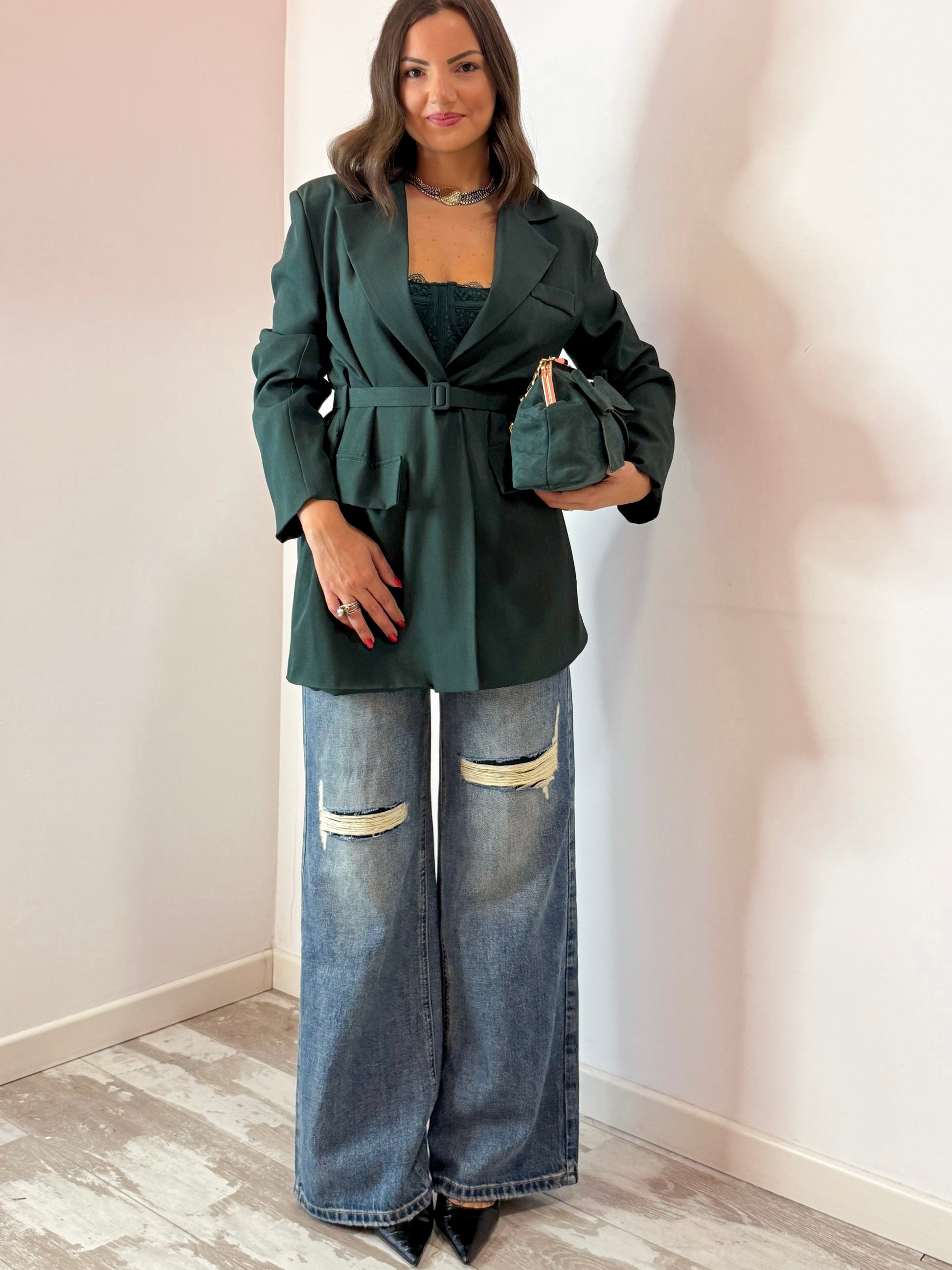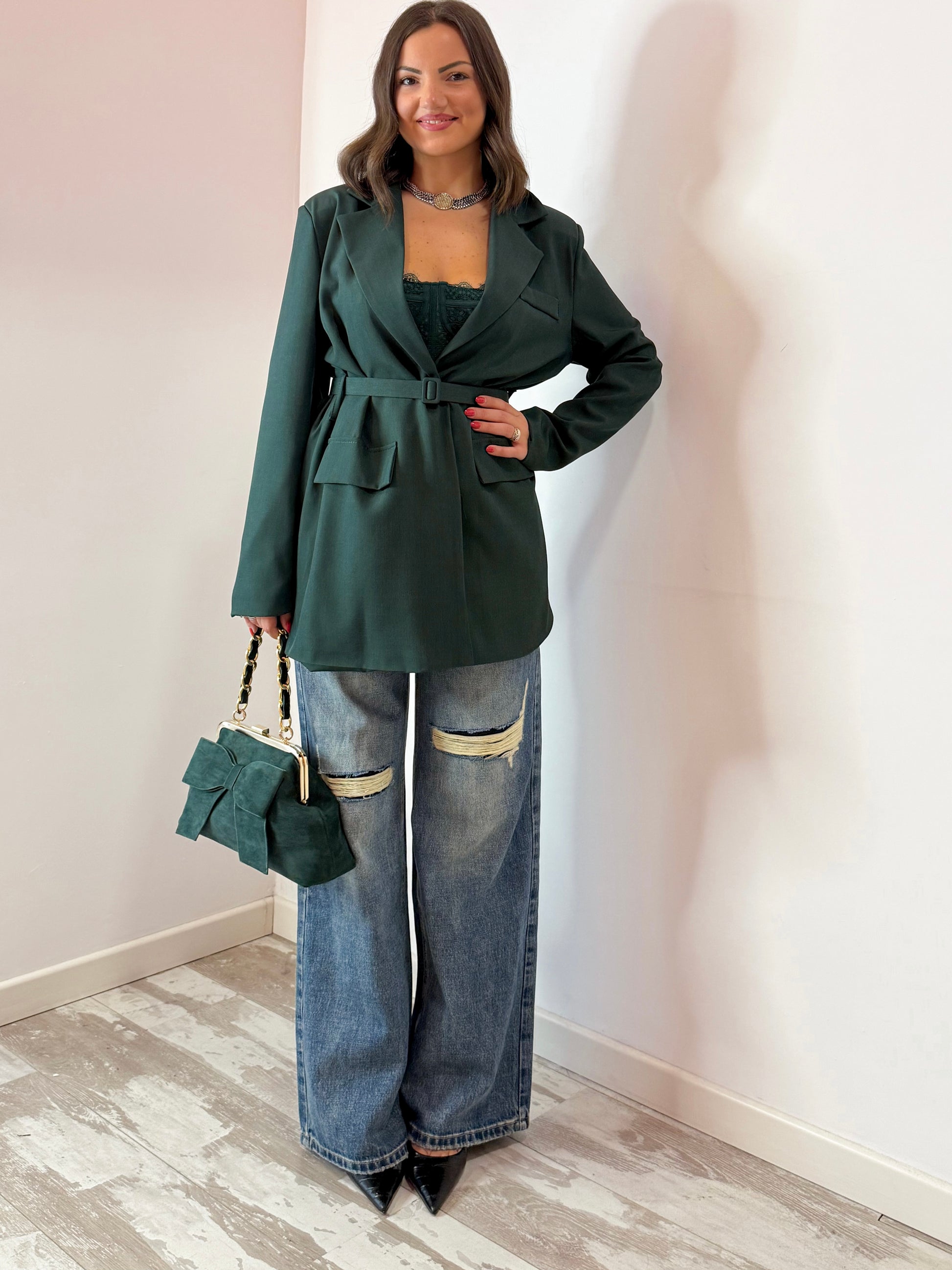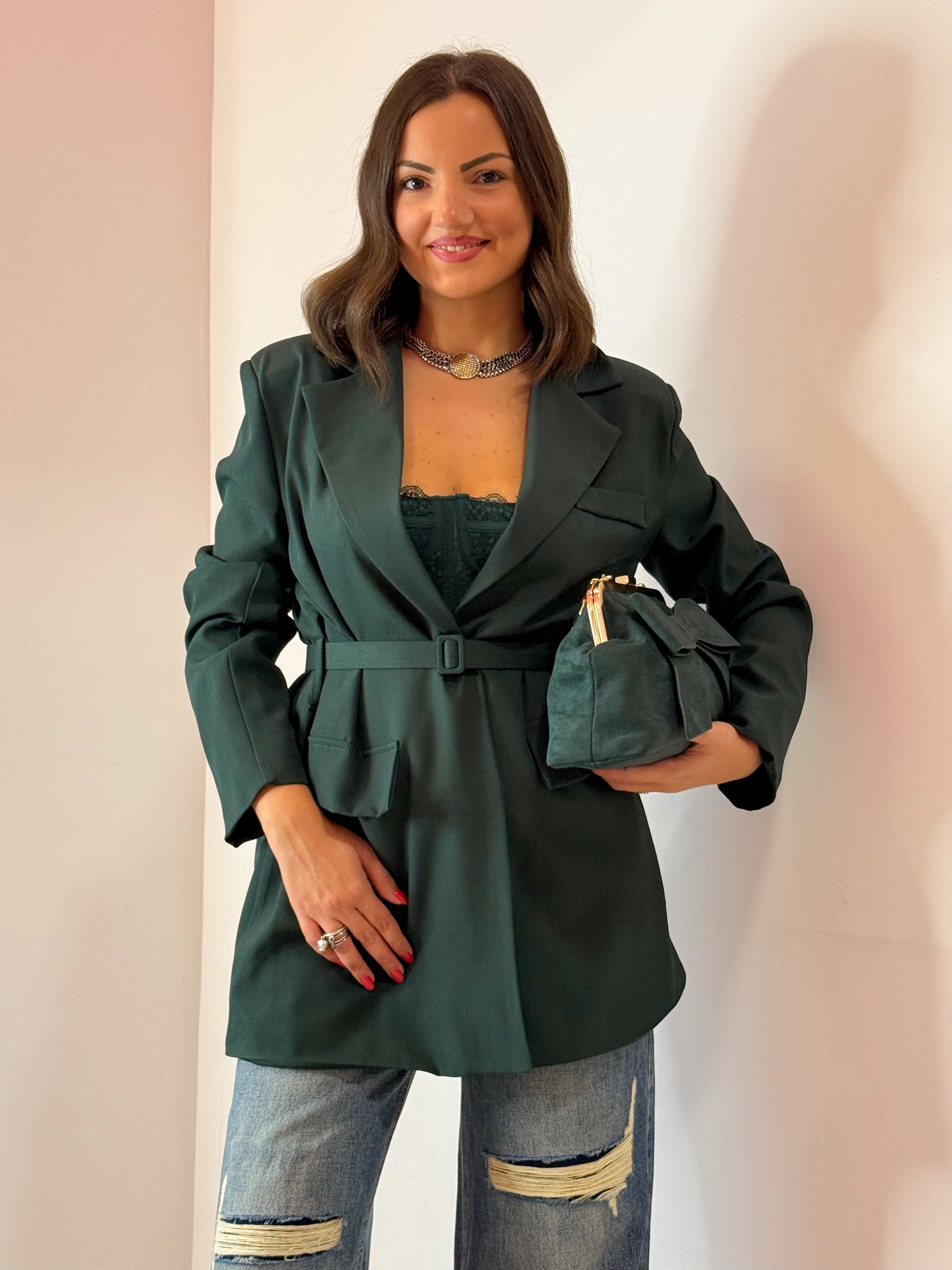 GIACCA CINTURINO VERDE E NERA