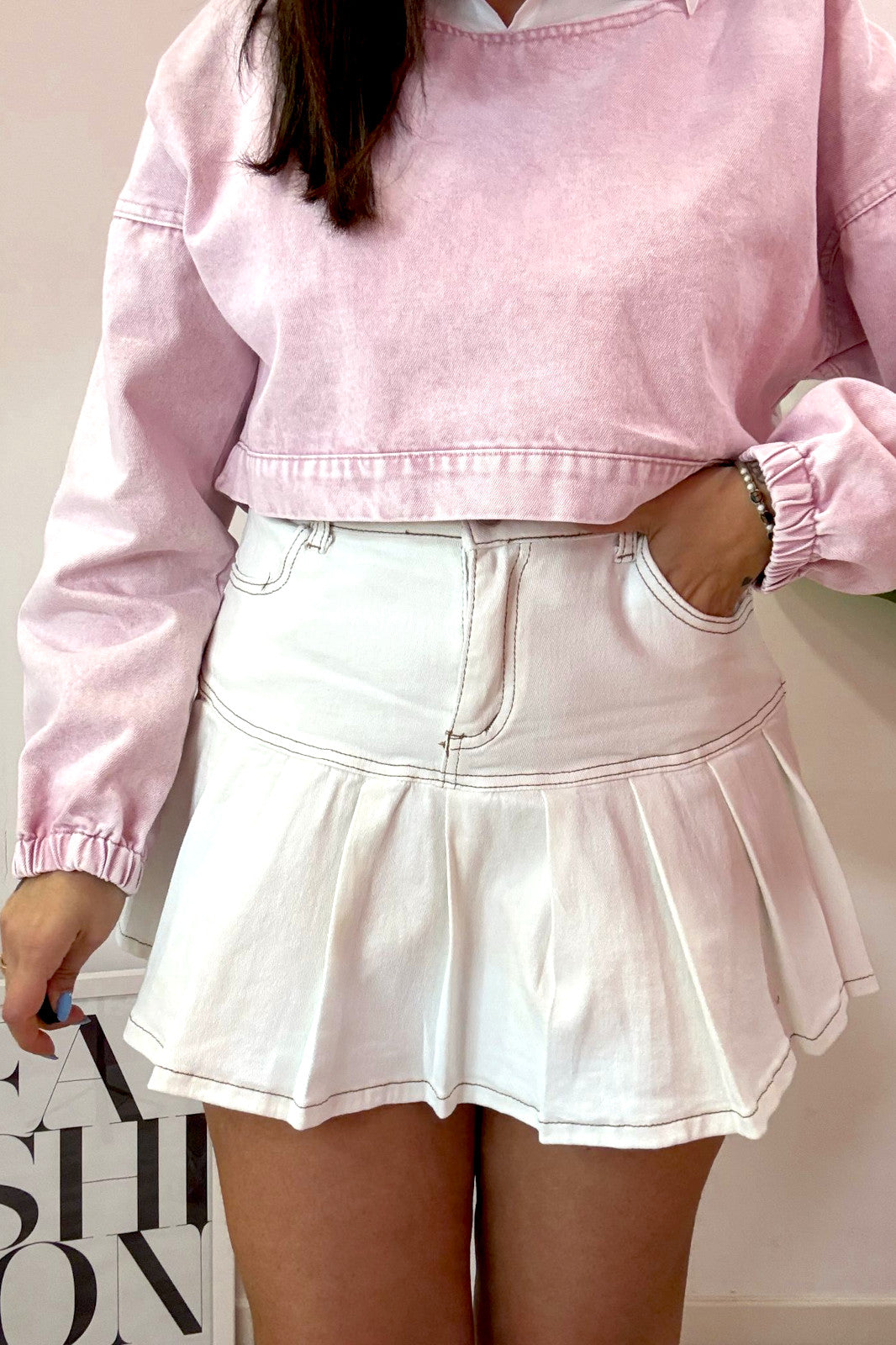 Gonnellina denim panna