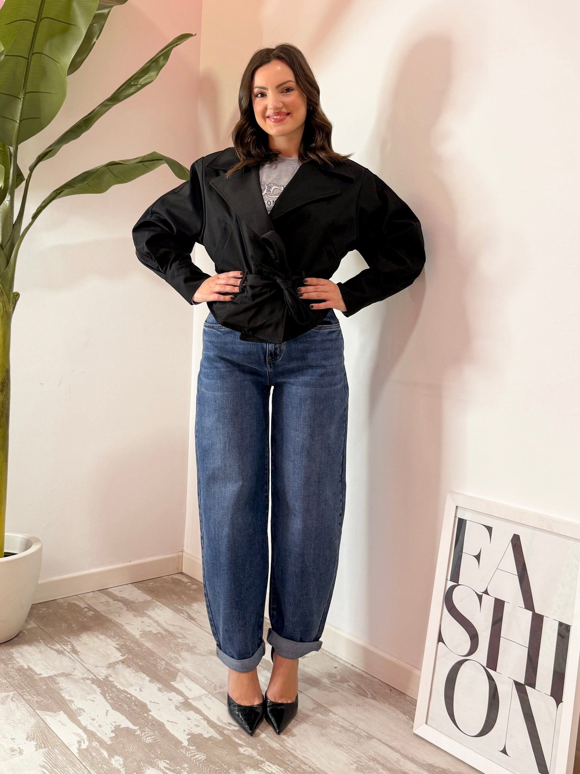 JEANS LAVAGGIO DENIM BLU , MODELO CLASSICO BALLOON , VITA ALTA ELASTICO