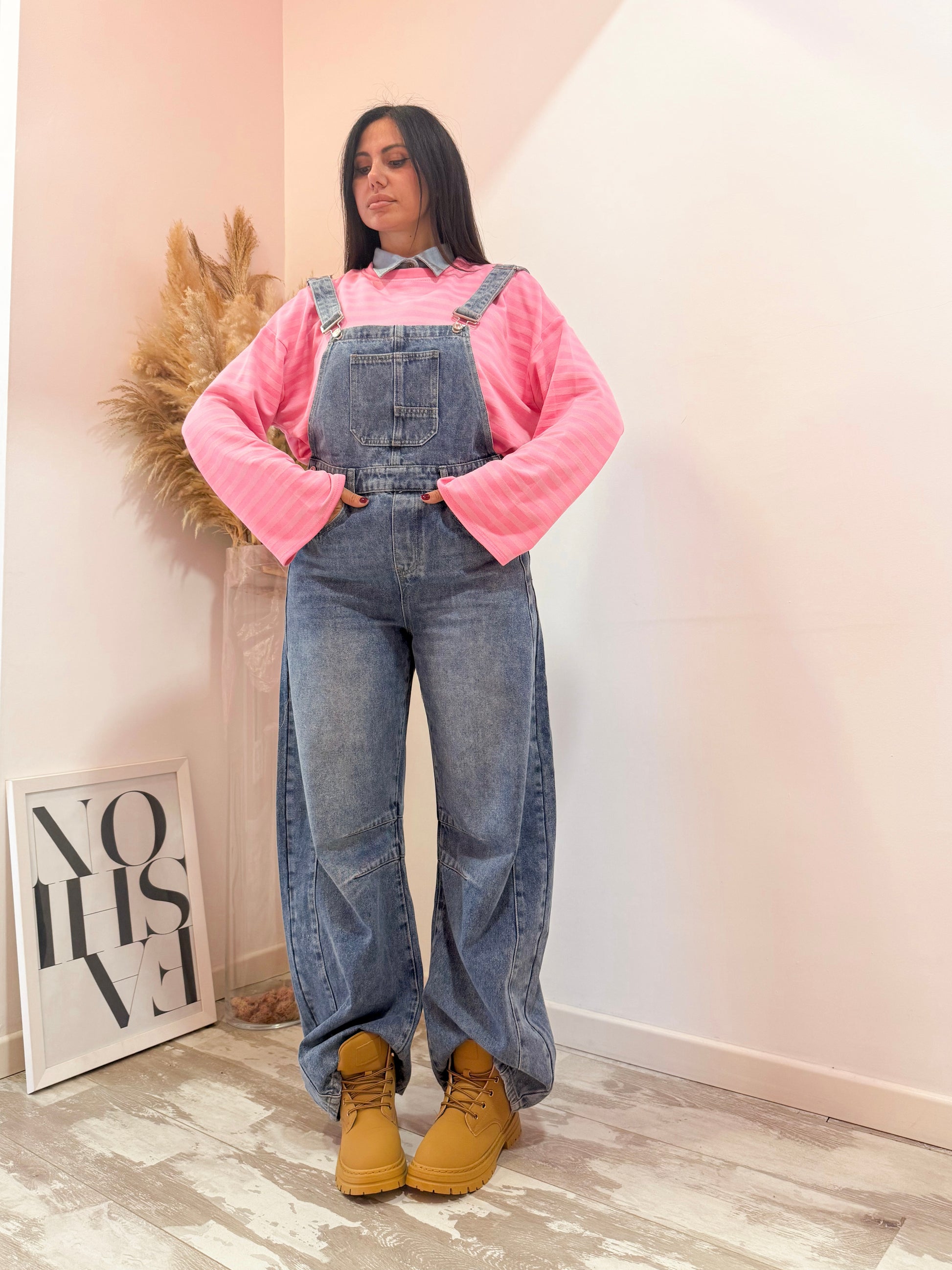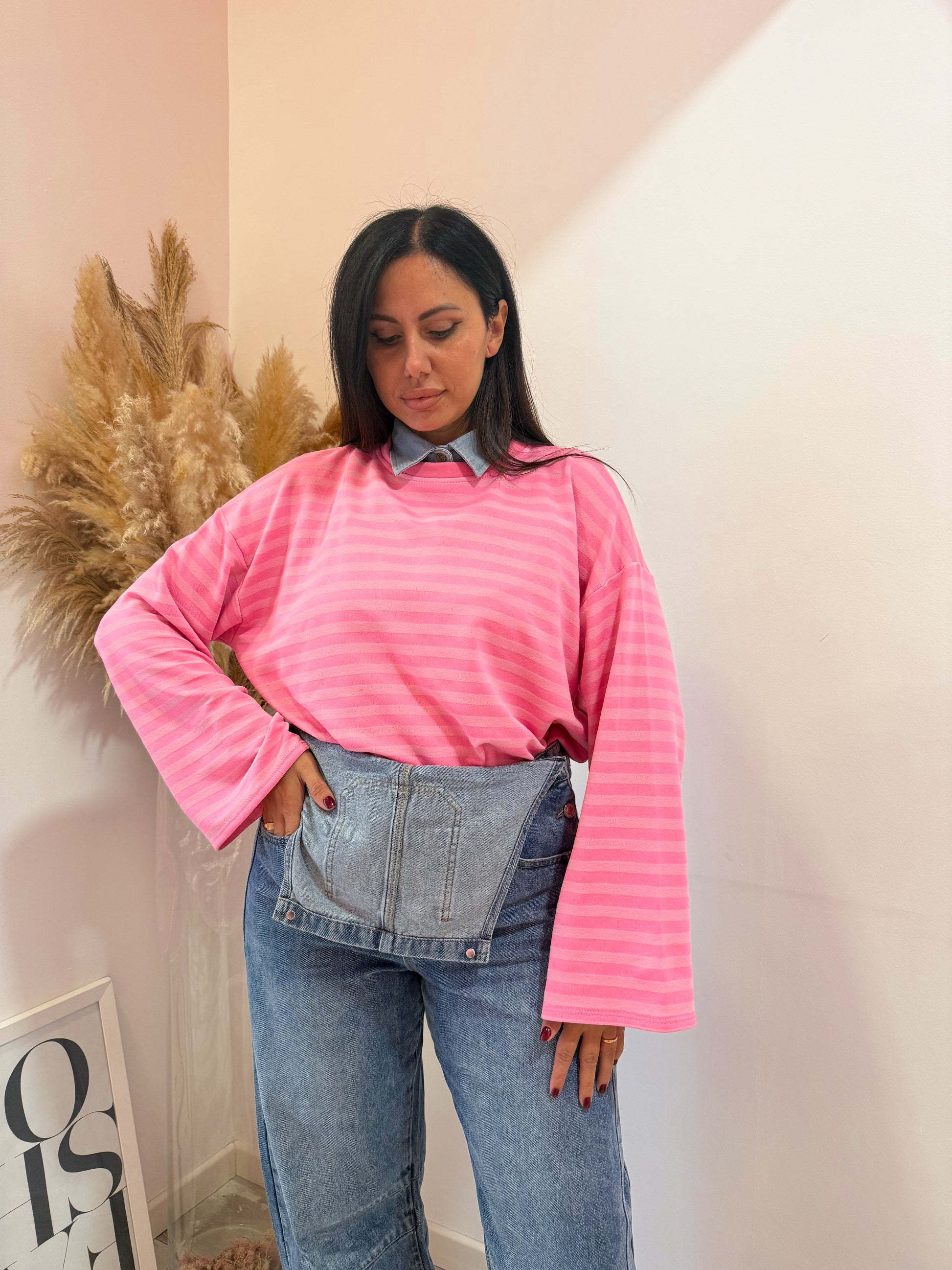 MAGLIA A RIGHE CON GIROCOLLO E MANICA LARGA , LUNGHEZZA BASIC , TAGLIA UNICA