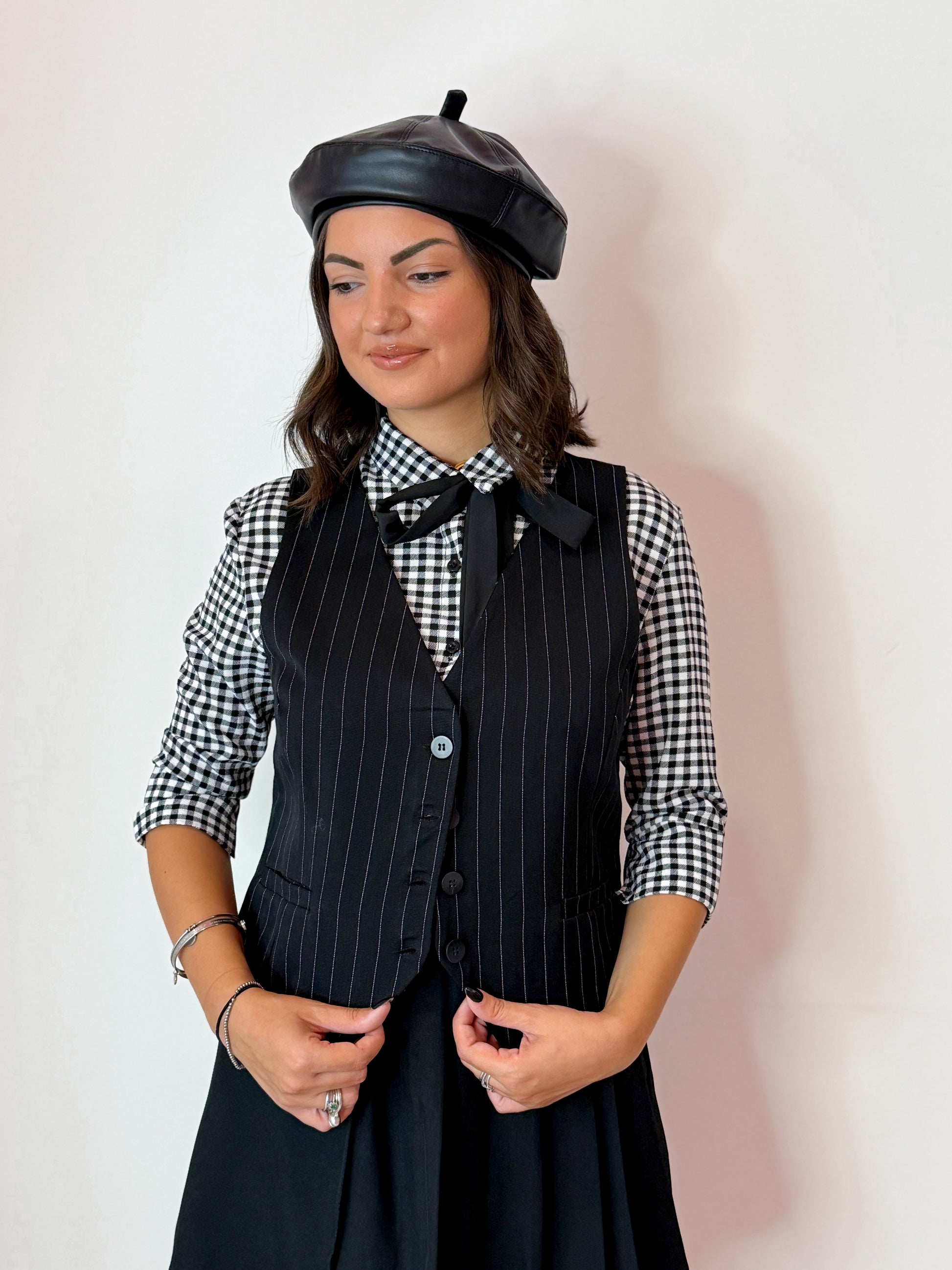 PANCIOTTINO FONDO NERO CN RIGHINI BIANCHI , BOTTONI AVANTI , TAGLIA UNICA