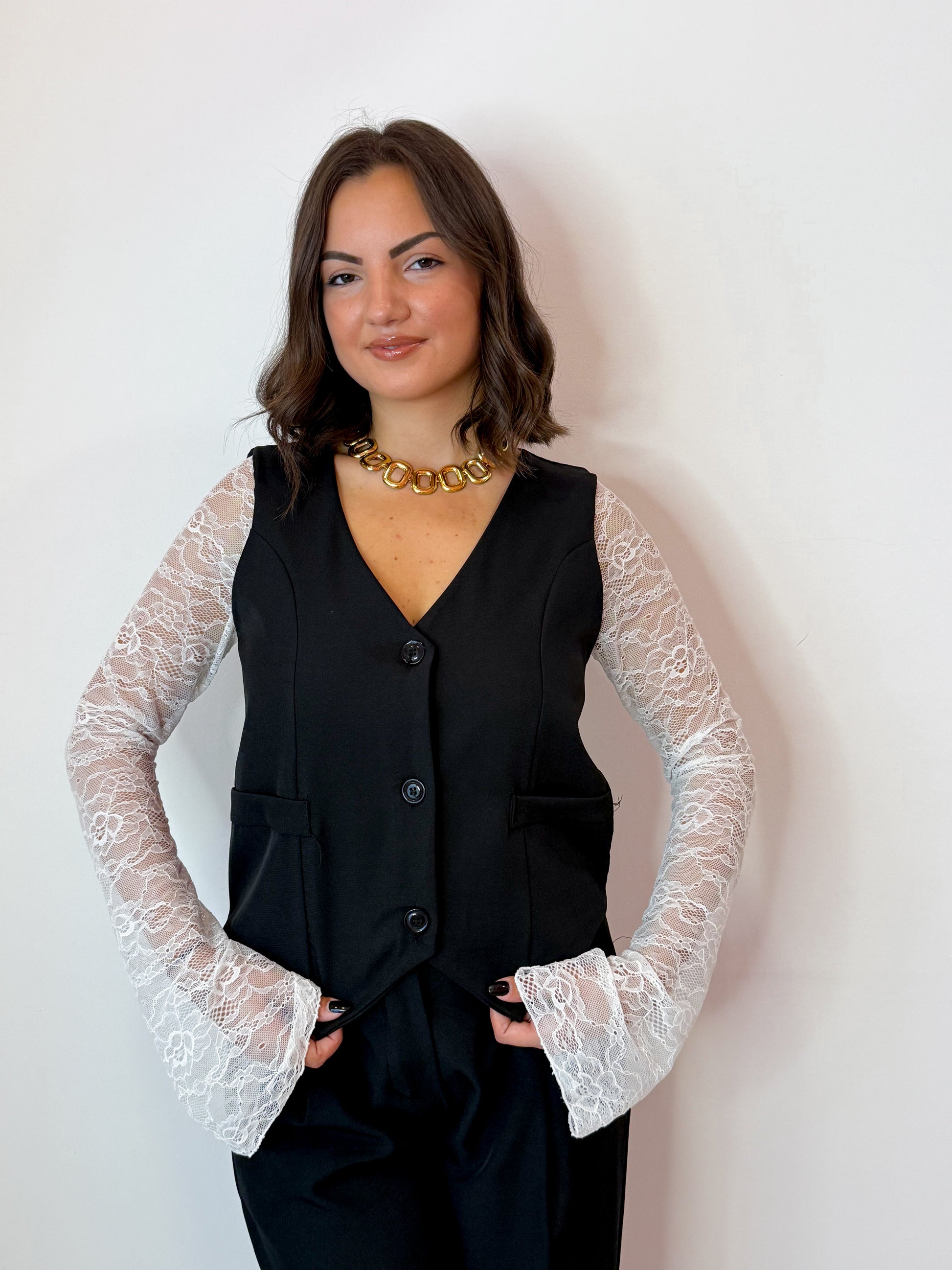 PANCIOTTINO GILET TINTA UNITA CON BOTTONI AVANTI , TAGLIA UNICA .