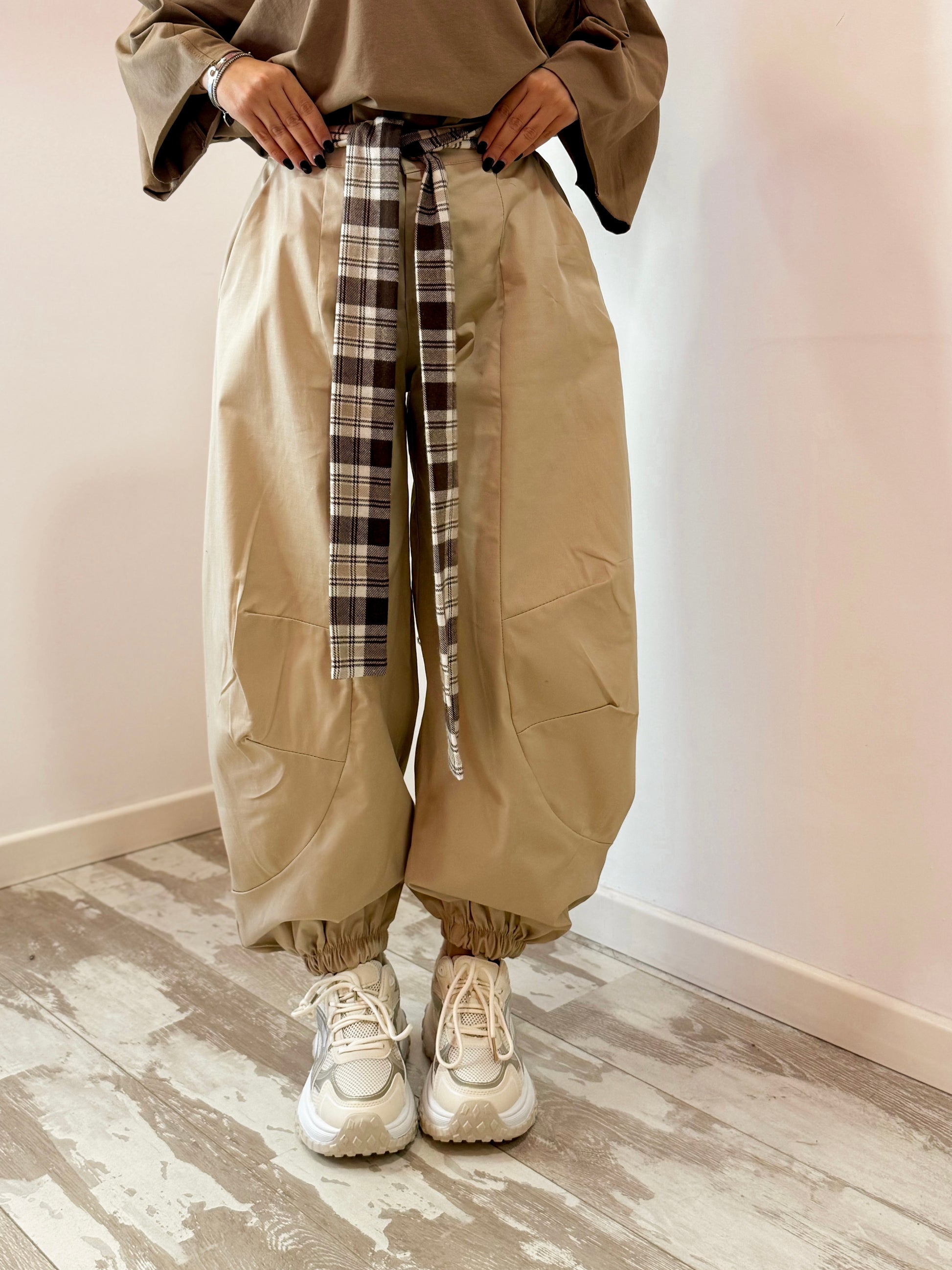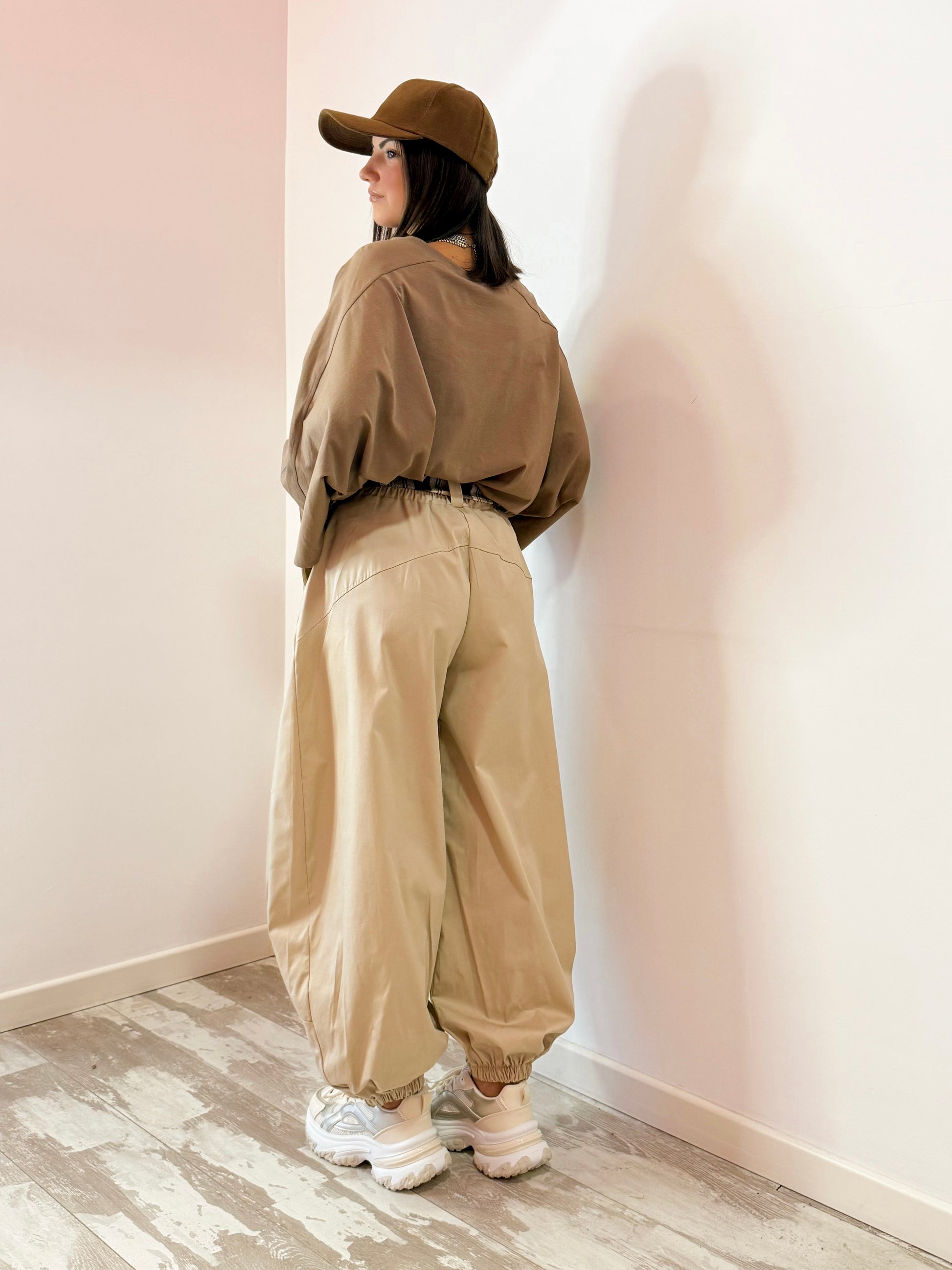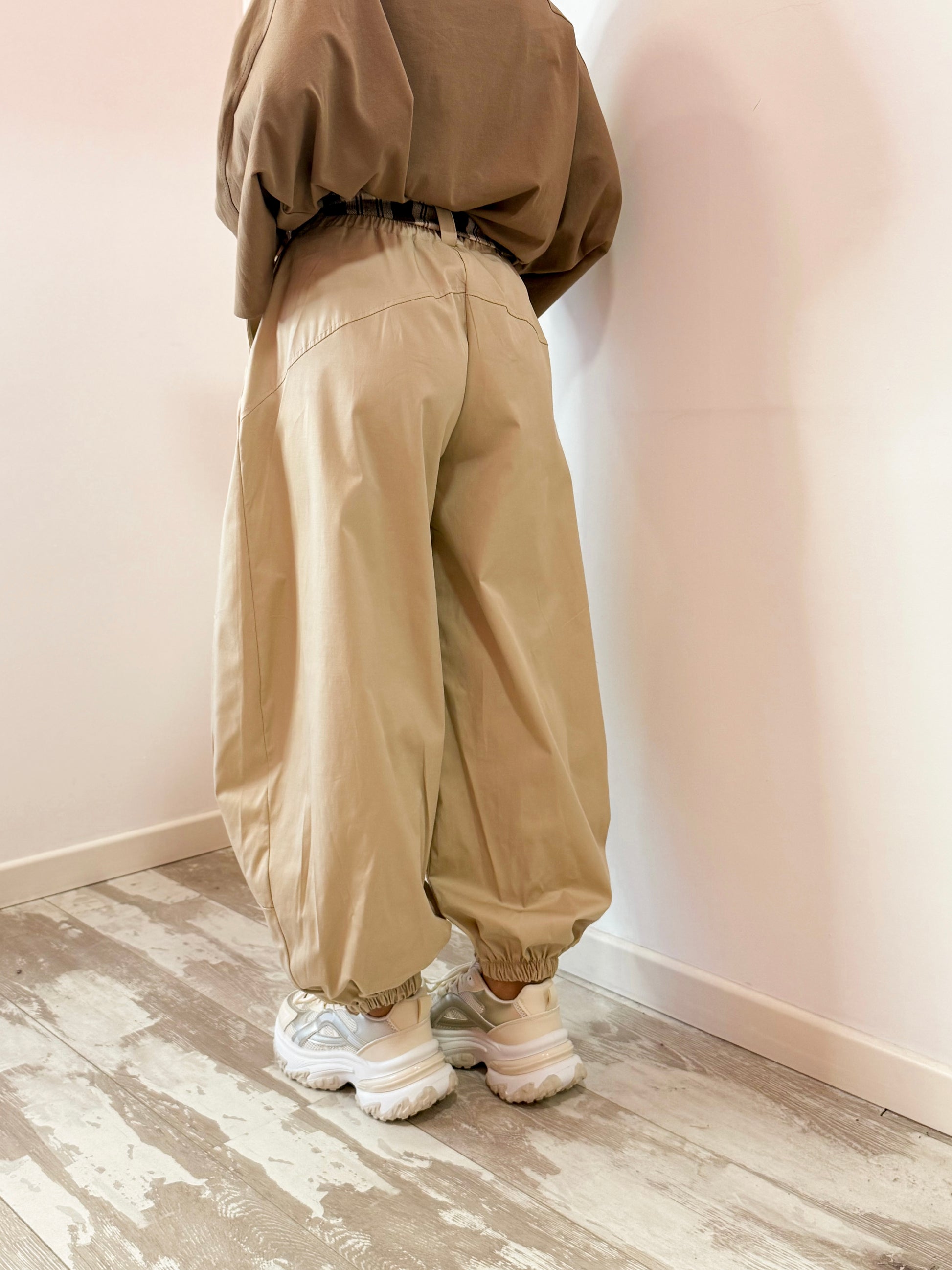 PANTALONE COTONE CON ELASTICO SUL FONDO MODELLO BALLON , COMPRENSIVO DI CINTURA , MOLLA IN VITA E BOTTONCINO AVANTI , TAGLIA UNICA VESTE FINO L.
