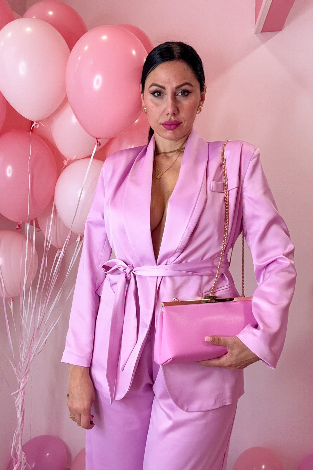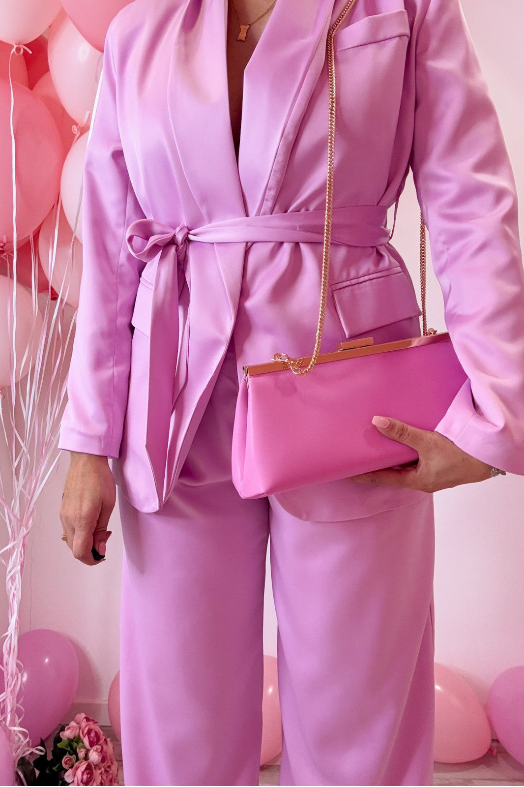 Pochette a rettangolo con chiusura a scatto color oro e tracolla a catena.
