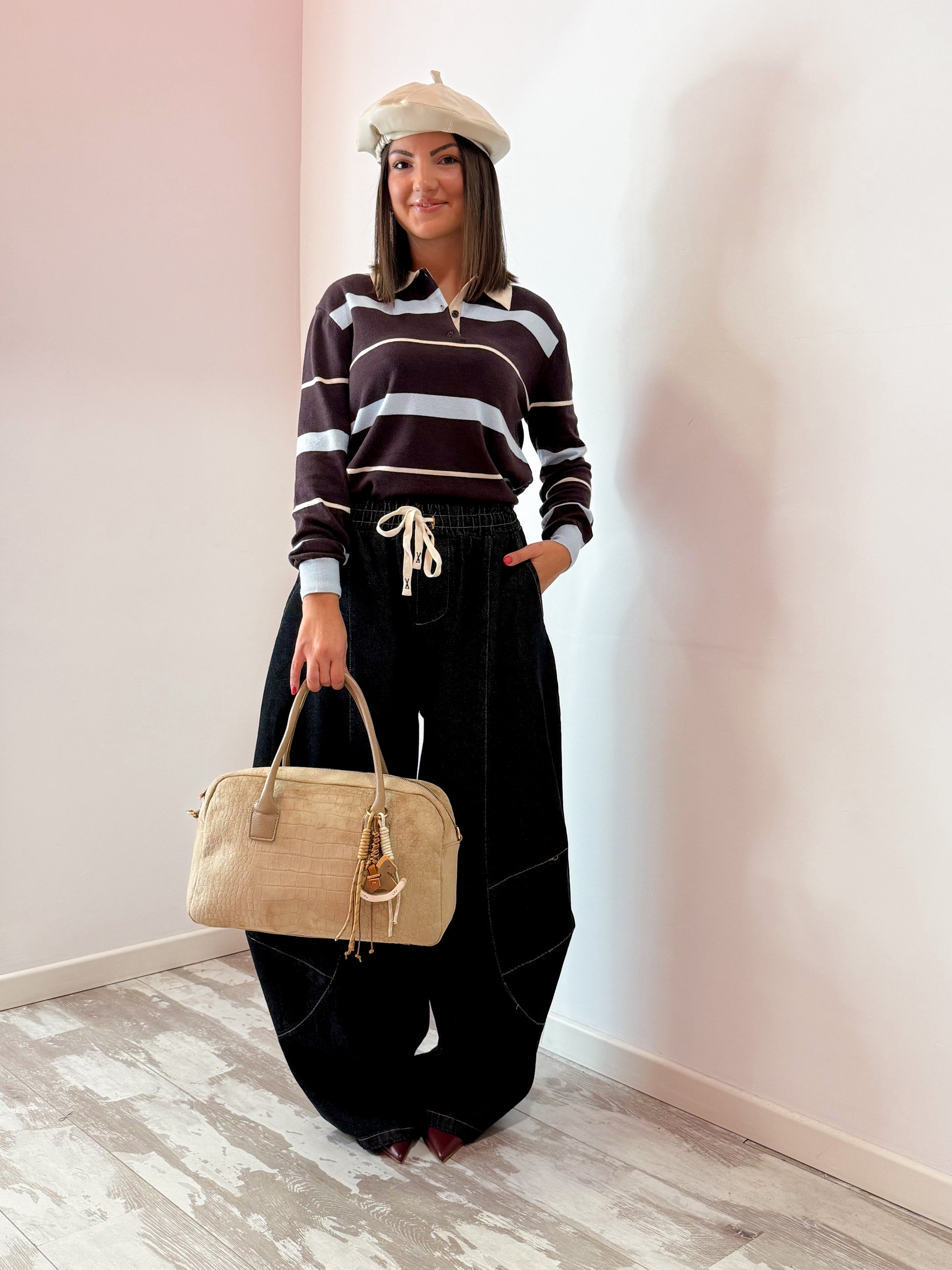 PULL A RIGHE MODELLO POLO CON COLLETTO , LUNGHEZZA BASIC