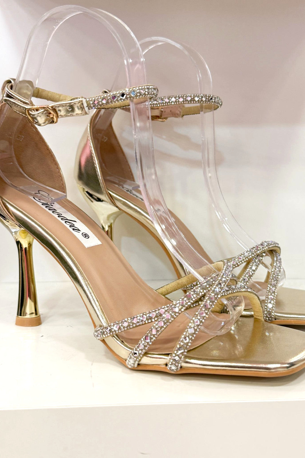Sandali con intreccio brillantinato e cinturino regolabile. Calzatura regolare.