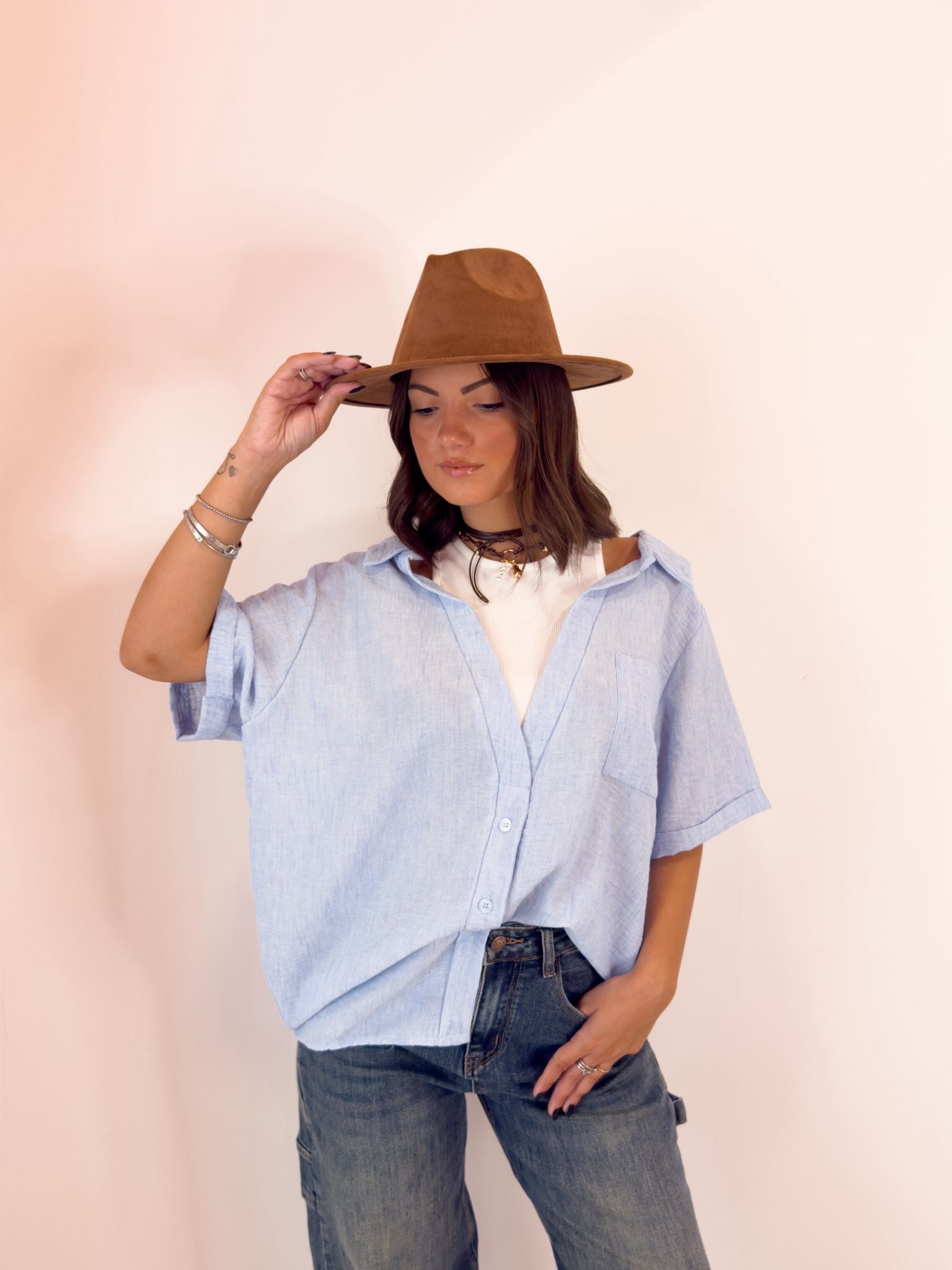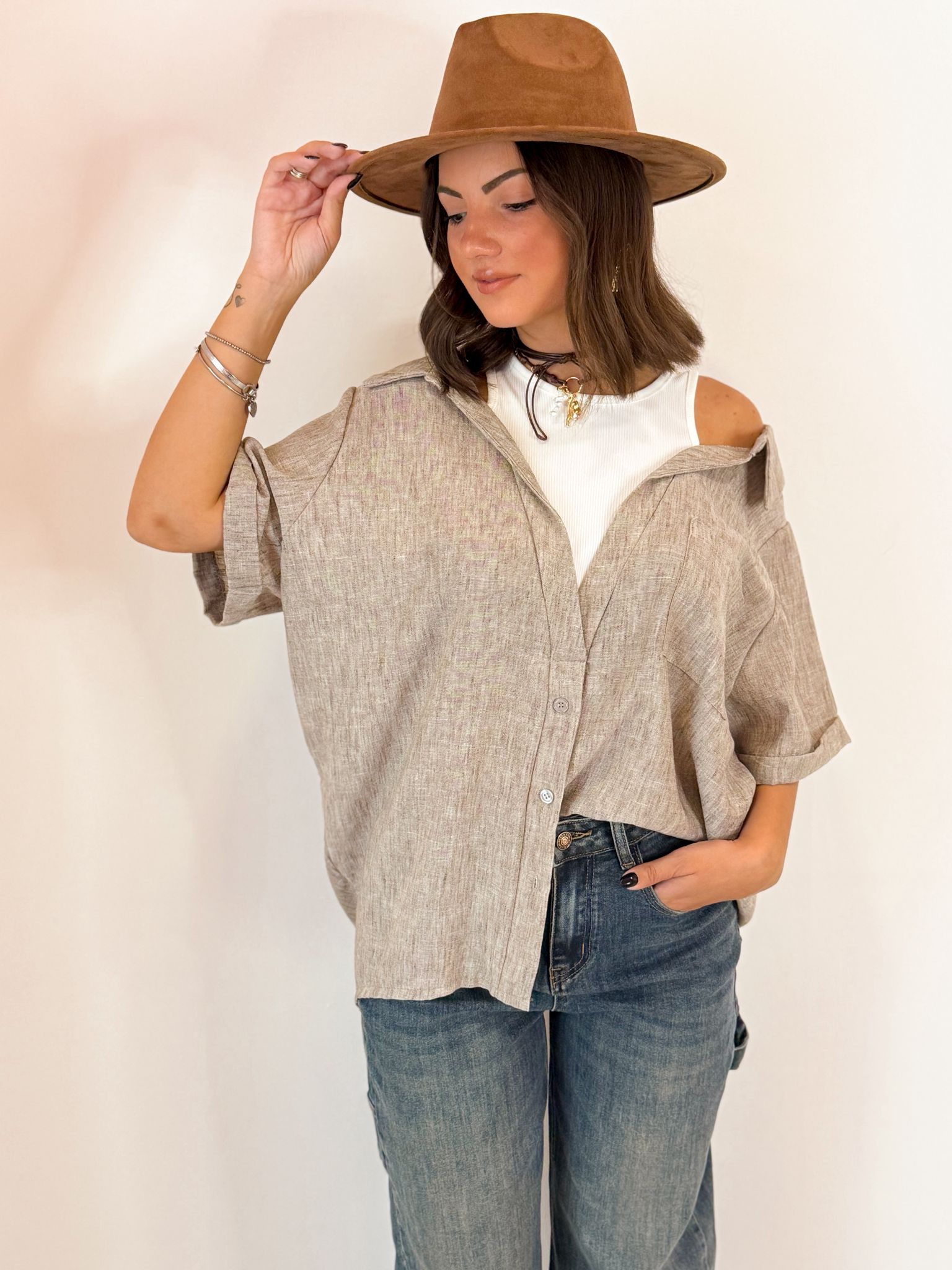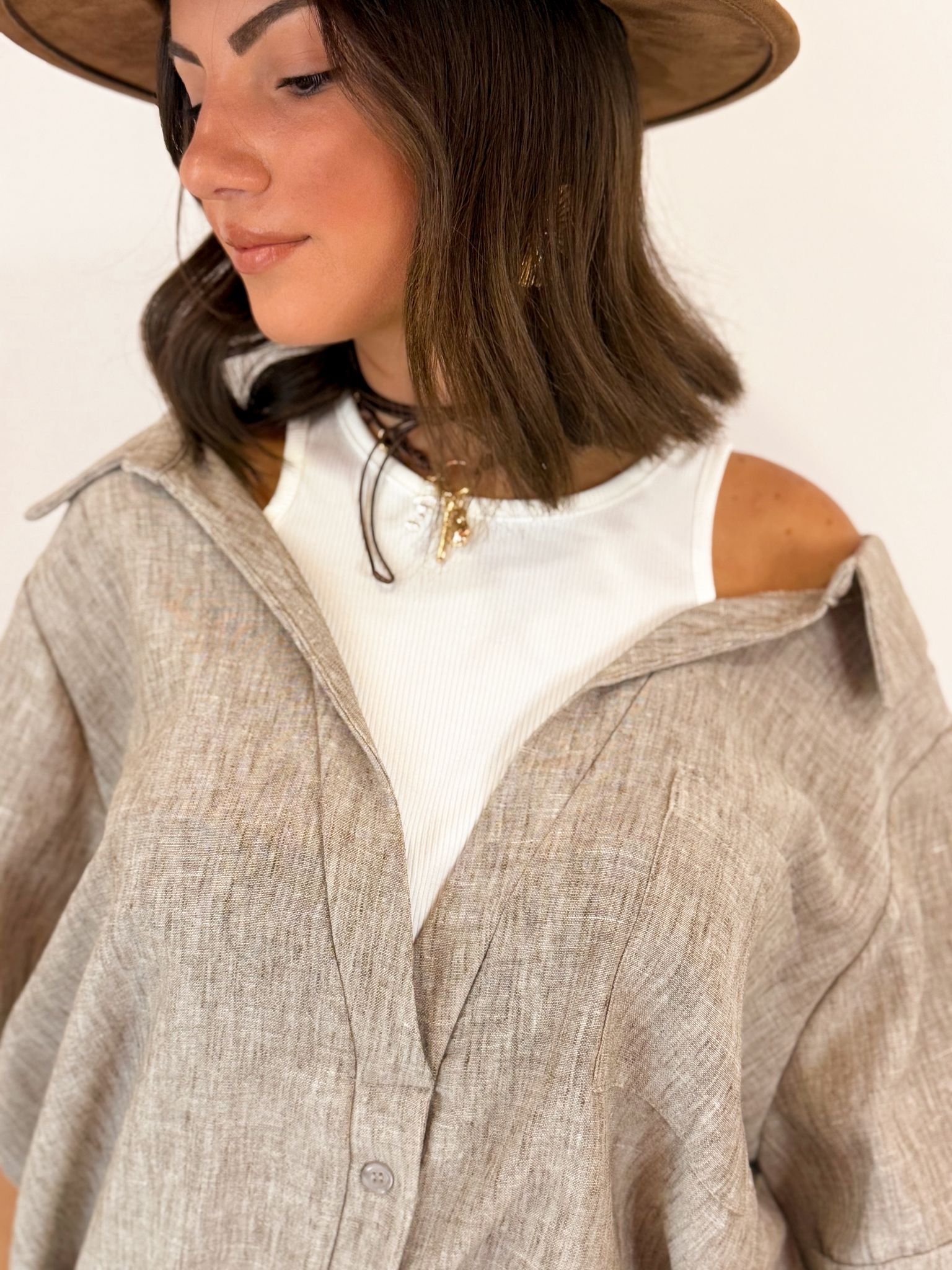 camicia leggermente over con finta canotta