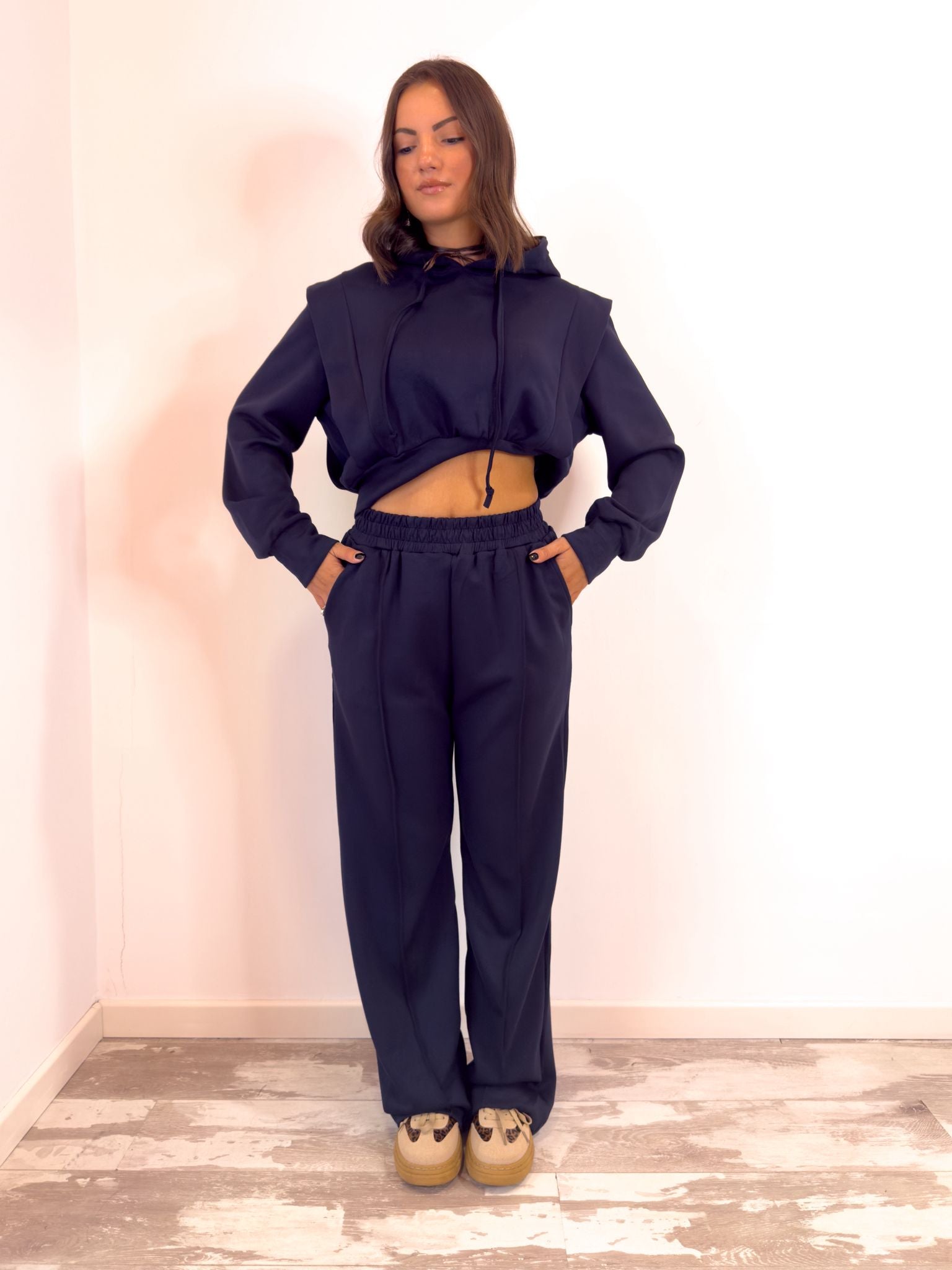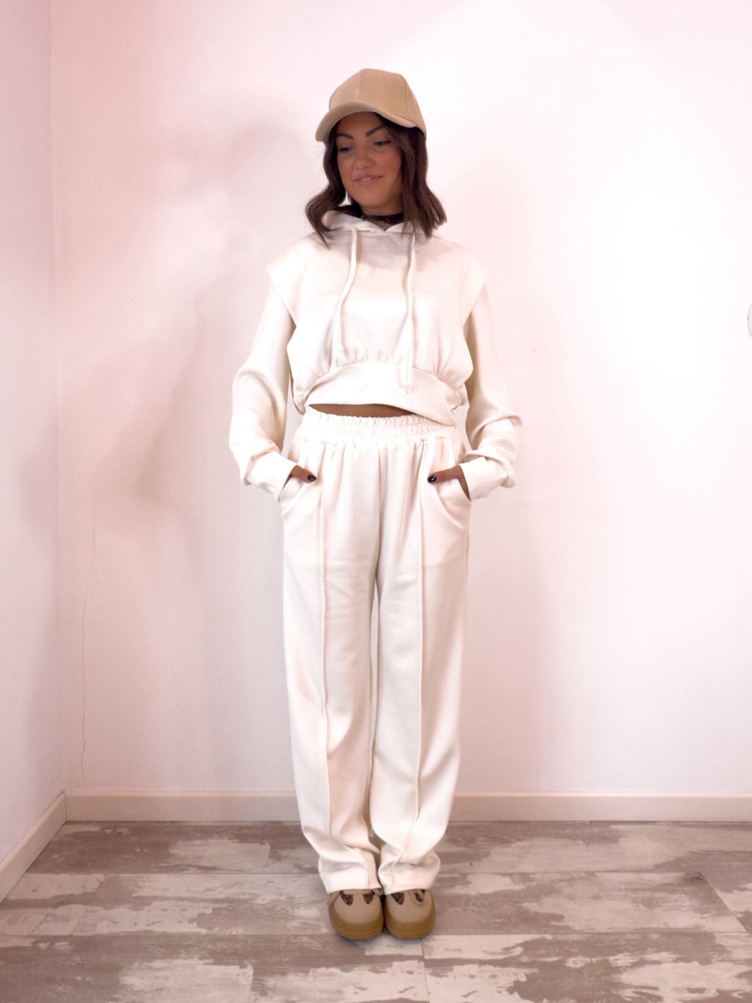 Tuta composta da maglia con cappuccio e spalline strutturate,