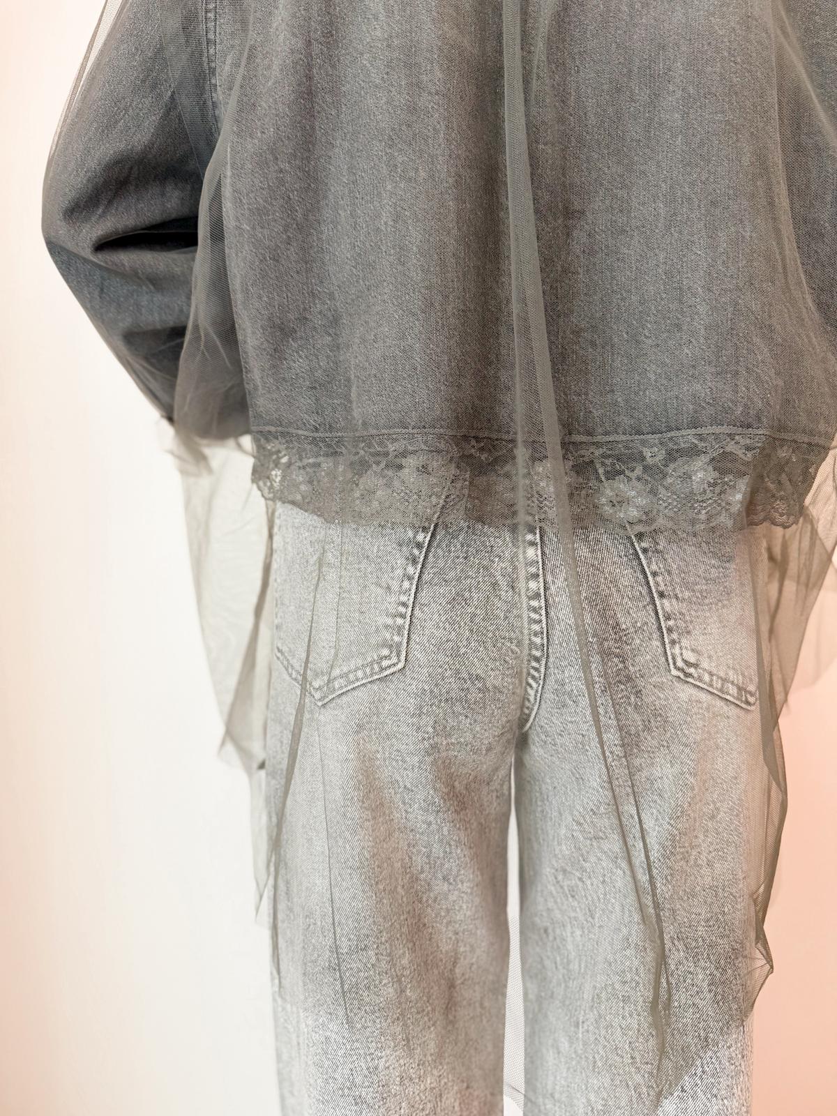 Camicetta doppio strato jeans e velo ,bottoni a clip su tutta la lunghezza