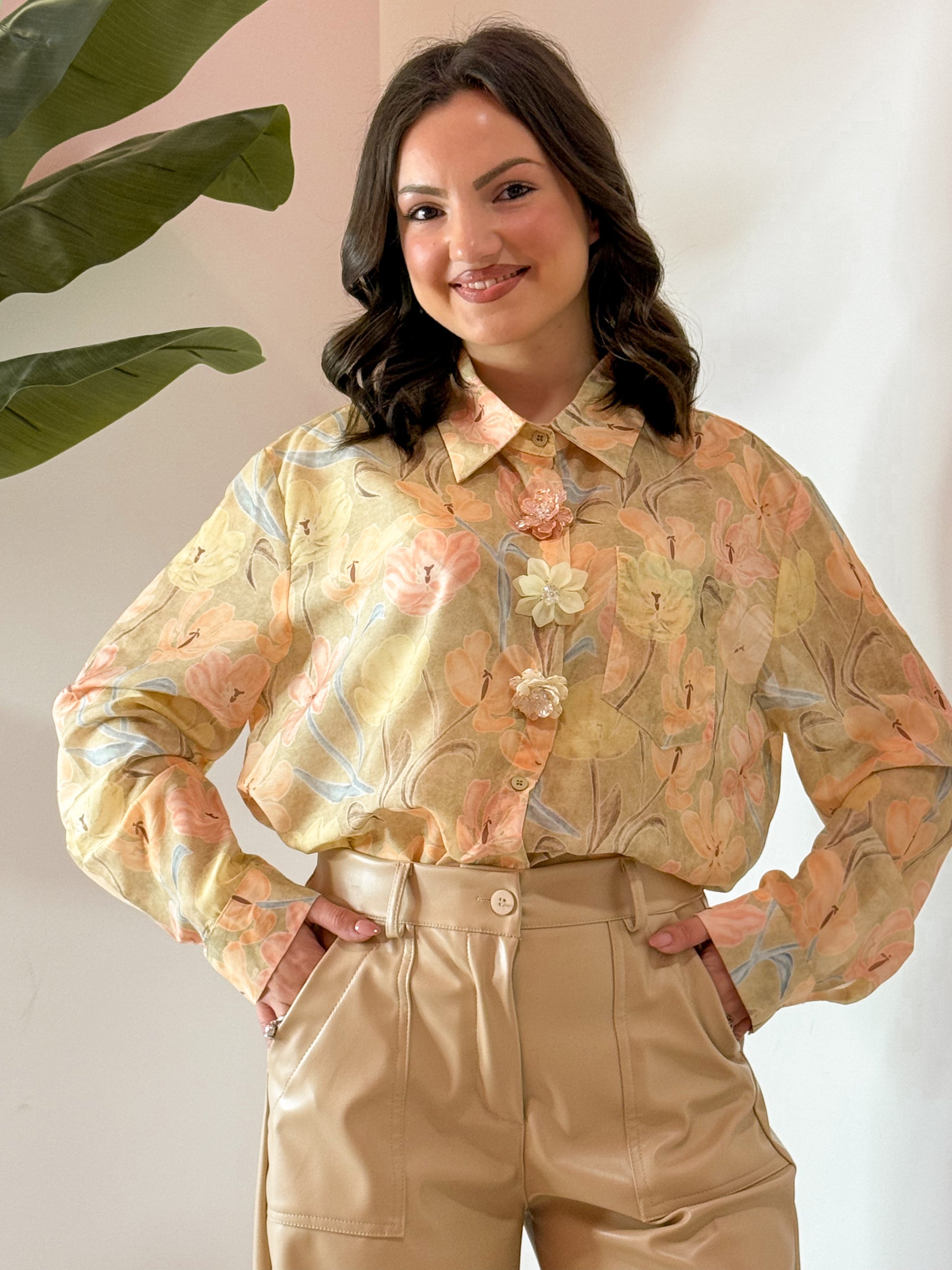 CAMICIA IN TESSUTO LEGGERO CON STAMPA FLOREALE , PRESENTA TRE BOTTONI A CIAPPETTA A FORMA DI FIORI , IL RESTANTE SONO DEI CLASSICI BOTTONCINI CON CHIUSURA AD OCCHIELLO , VESTE FINO UNA L