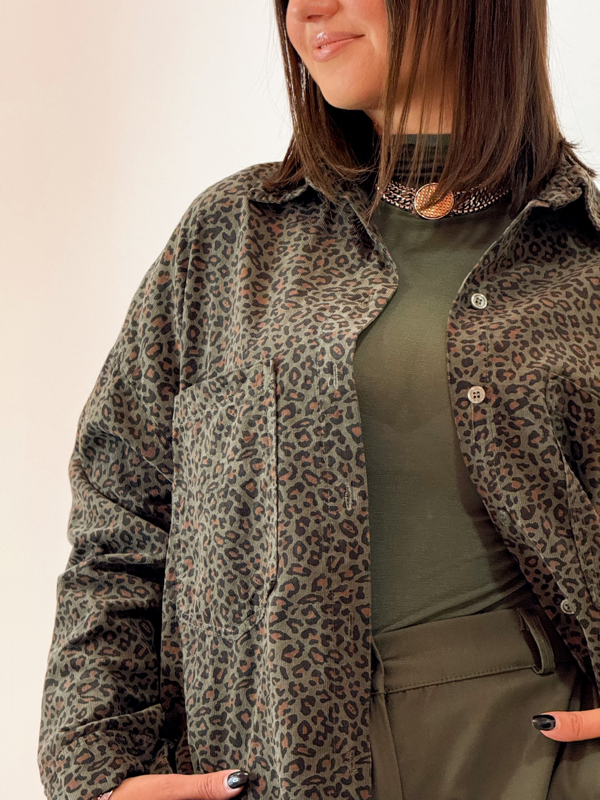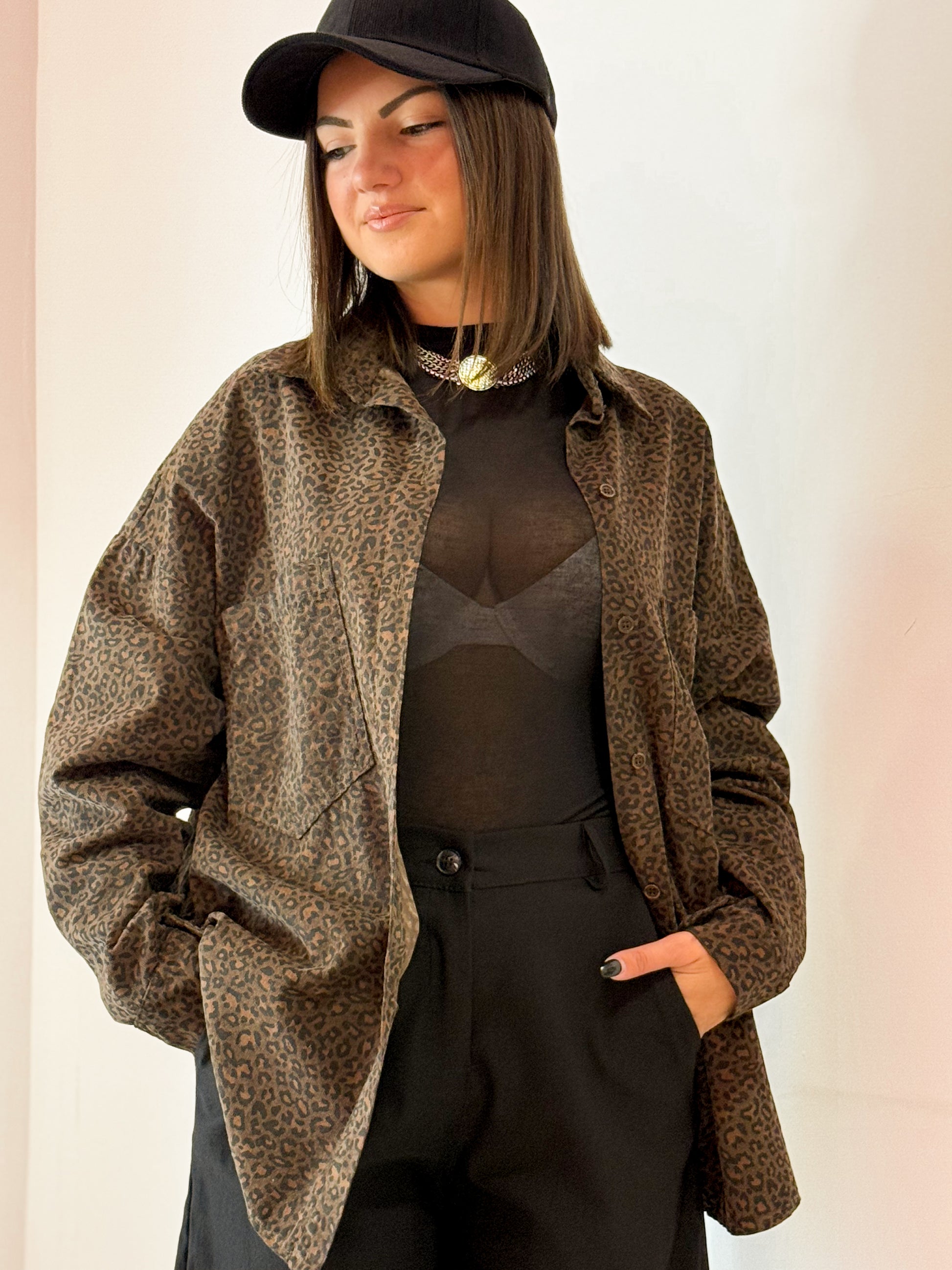 CAMICIA COTONE EFFETTO QUASI VELLUTATO , A COSTINE CON STAMPA MACULATA