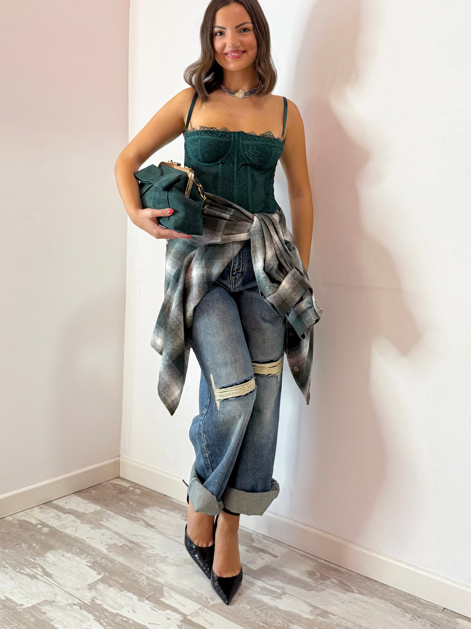 CAMICIA A QUADRI CON MANICA A SBUFFO E POLSINI CN BOTTONCINO , TAGLIA UNICA VESTE FINO L