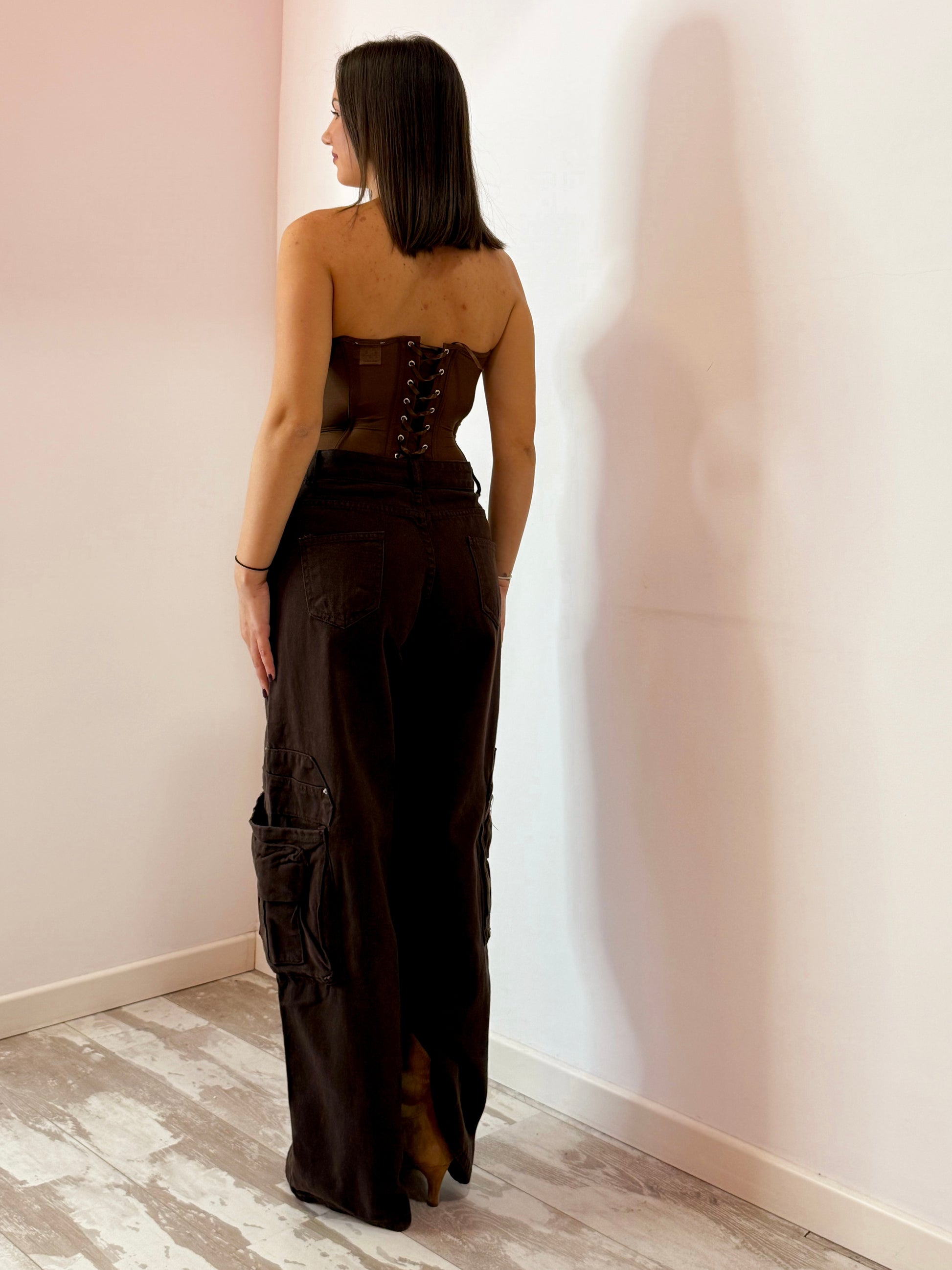 JEANS MODELLO CARGO , CON TASCONI , PORTA UNA SORTA DI CINTURA CON EFFETTO CAMICIA , VESTE REGOLARE