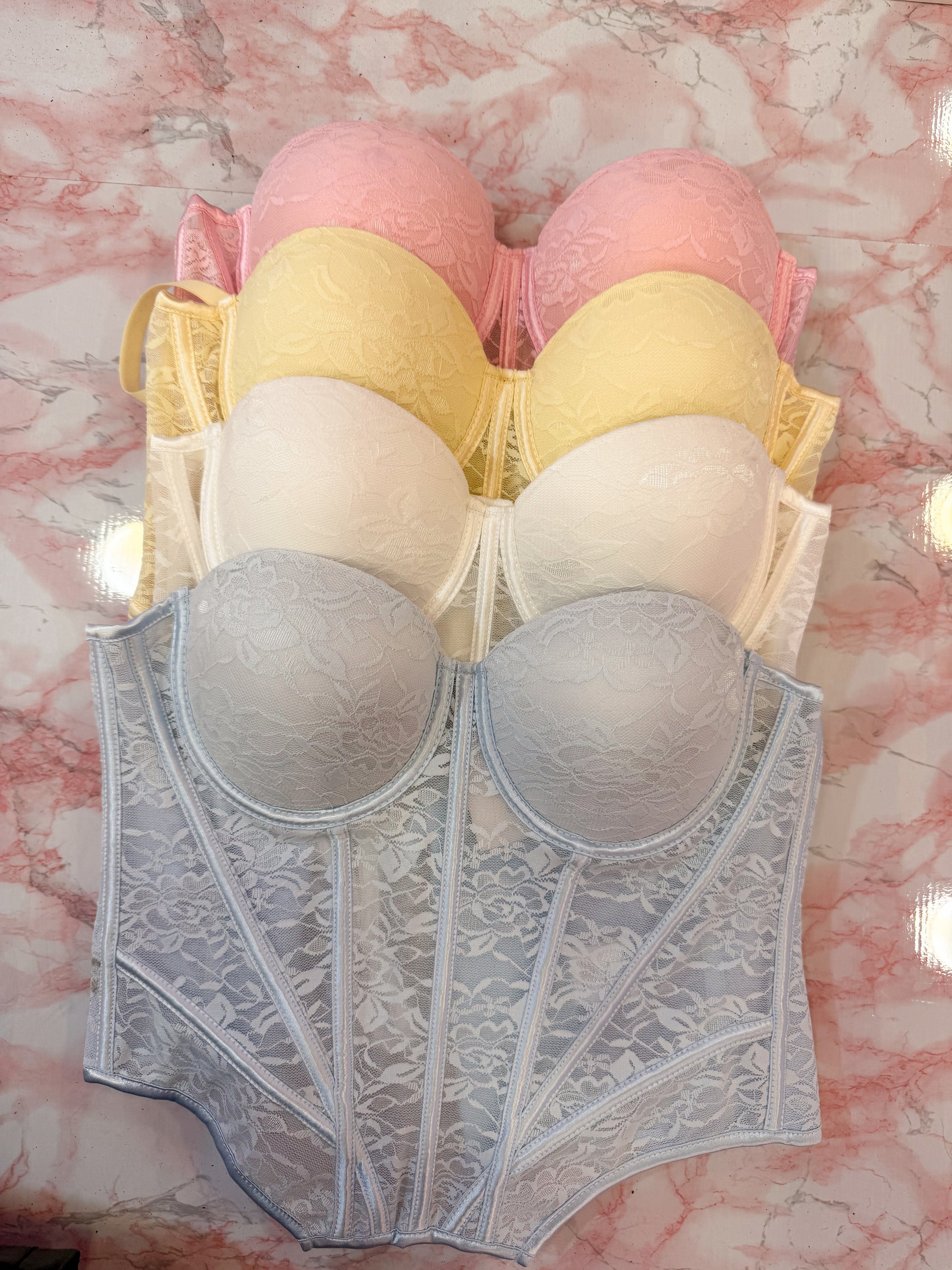 CORPETTO CON BUSTINO RICAMATO , COPPETTE PREFORMATE , BRETELLE REGOLABILI E GANCETTI SUL RETRO