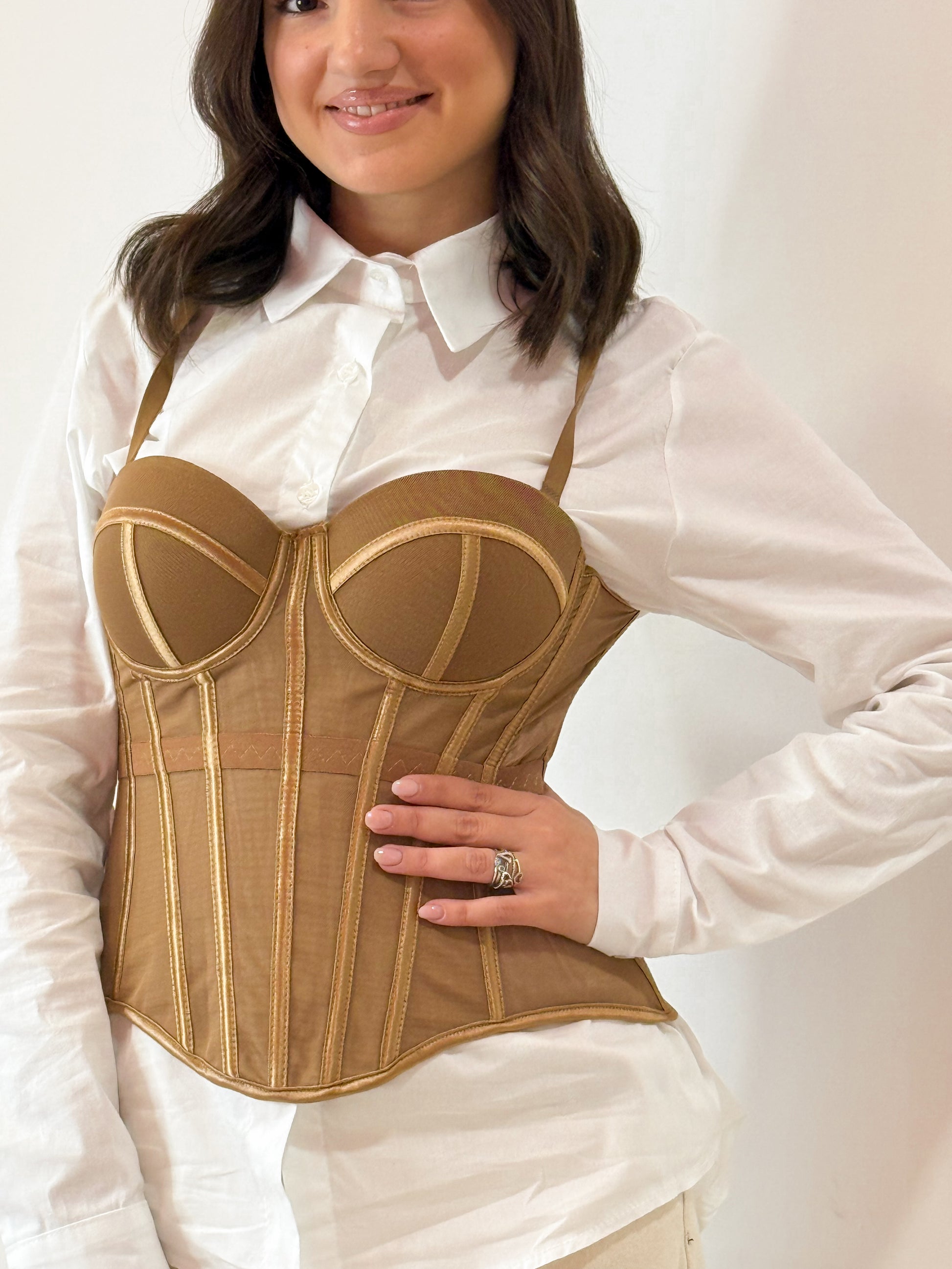 CORPETTO VELATO , CON COPPETTE PREFORMATE , BRETELLE REGOLABILI E CHIUSURA CON GANCETTI SUL RETRO