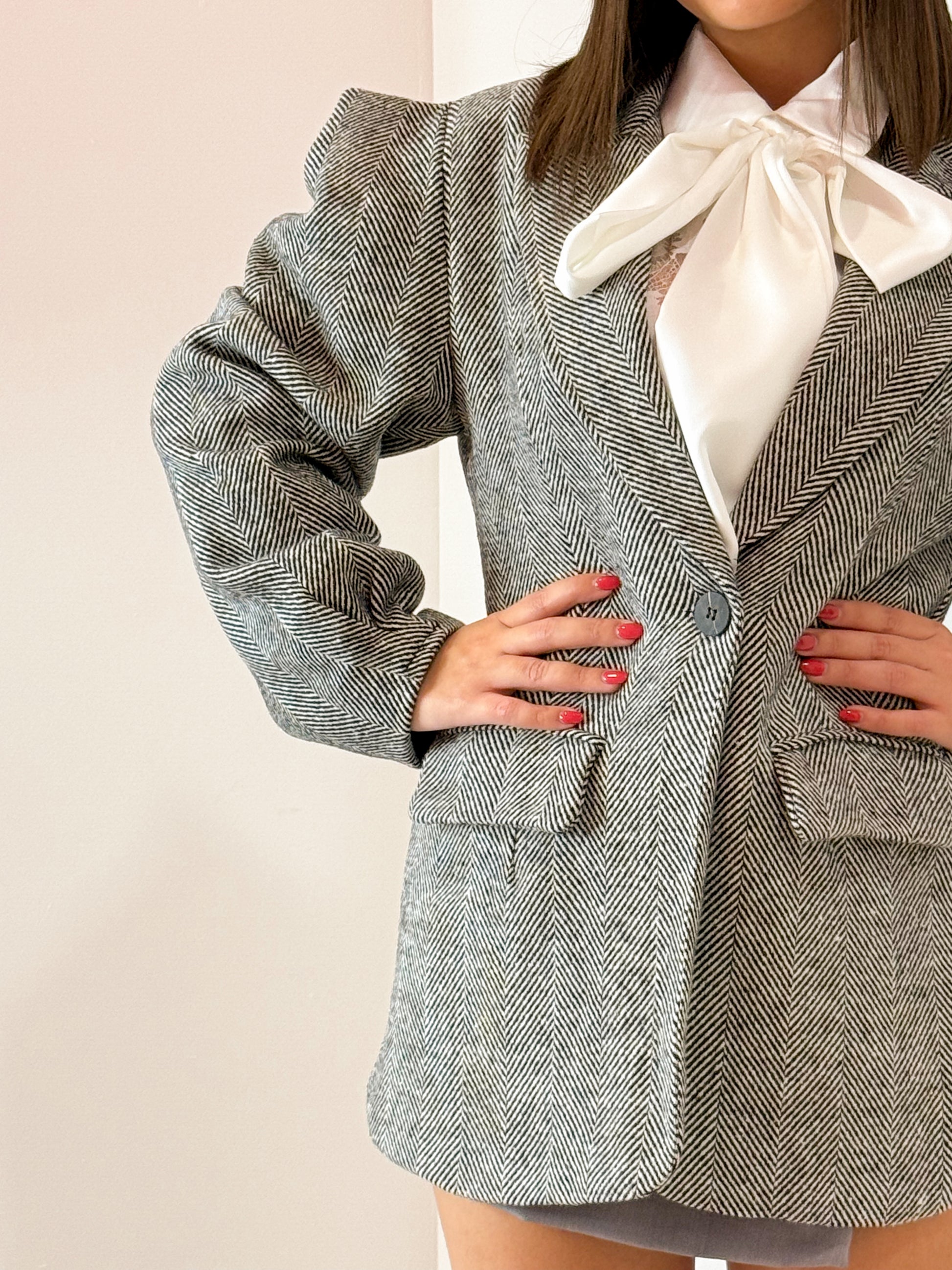 GIACCA AVVITATA, MONOPETTO CON SPALLINE STRUTTURATE, MANICA LEGGERMENTE A SBUFFO , FODERATA ALL'INTERNO E SPALLINE IMBOTTITE