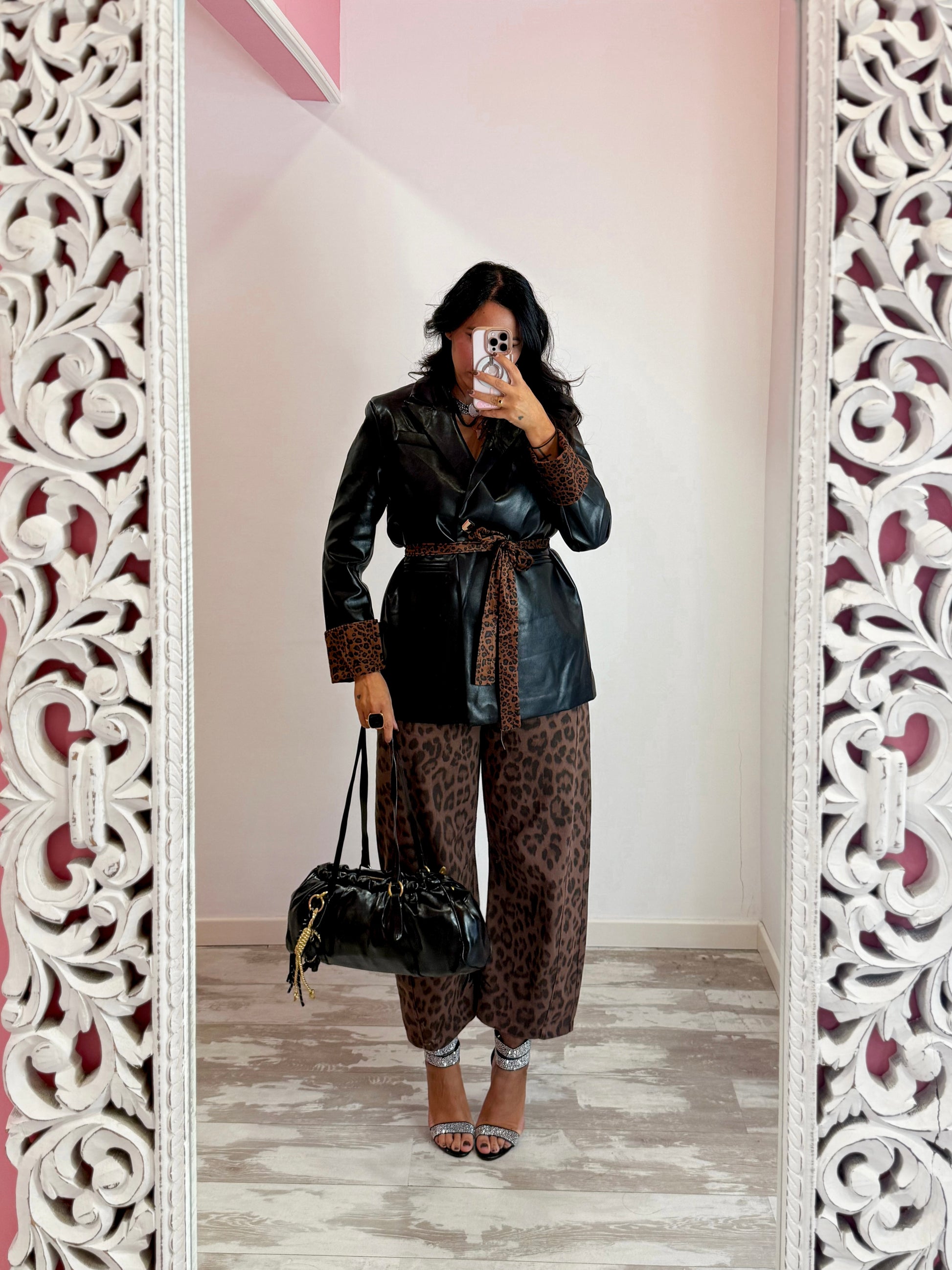 PANTALONE CN STAMPA MACULATA IN FONDO SCURO , MODELLO ELASTICO
