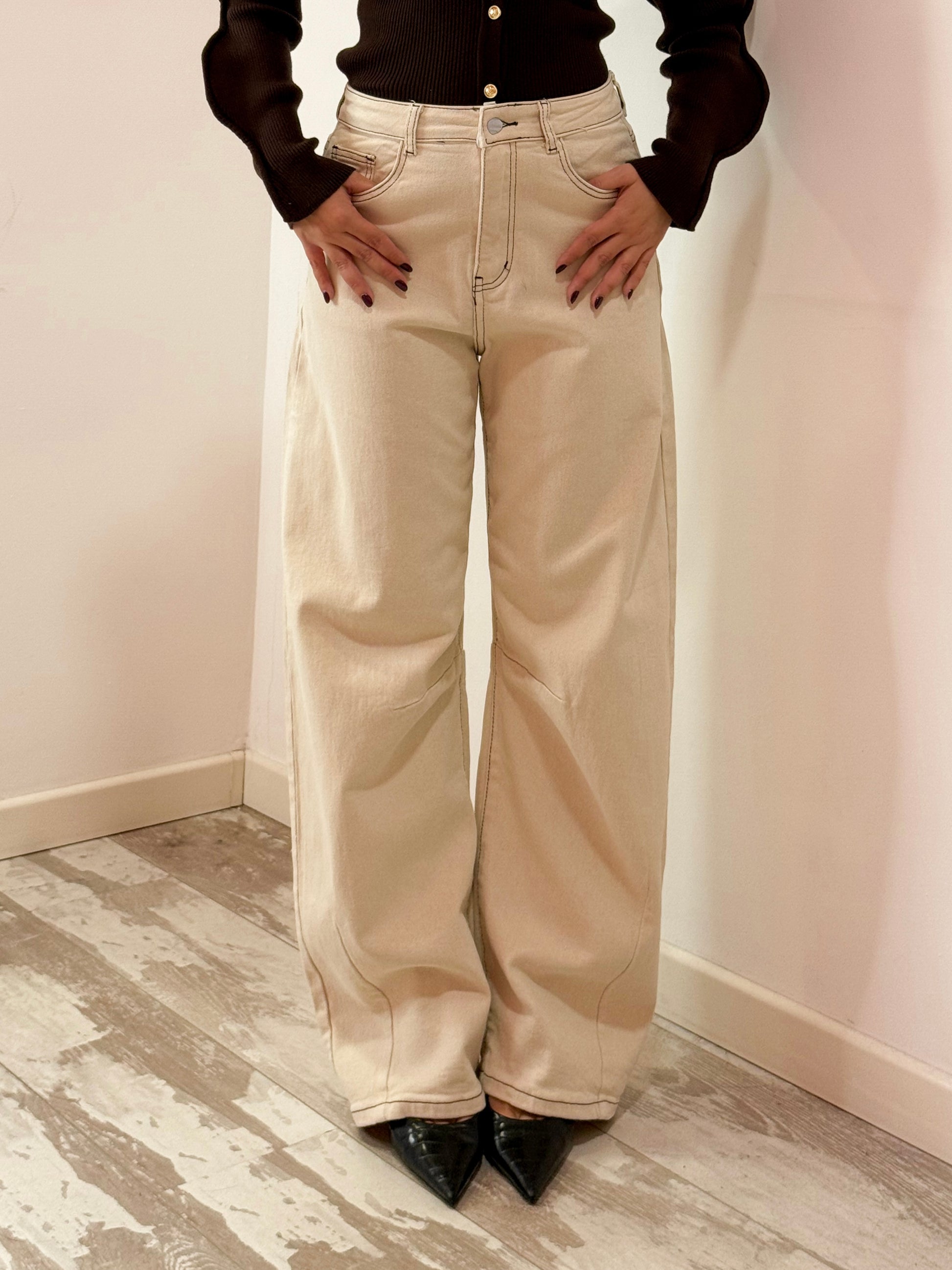 JEANS MODELLO LEGGERMENTE BALLOON CON CUCITURE SCURE ,MODELLO ELASTICO , VESTE REGOLARE