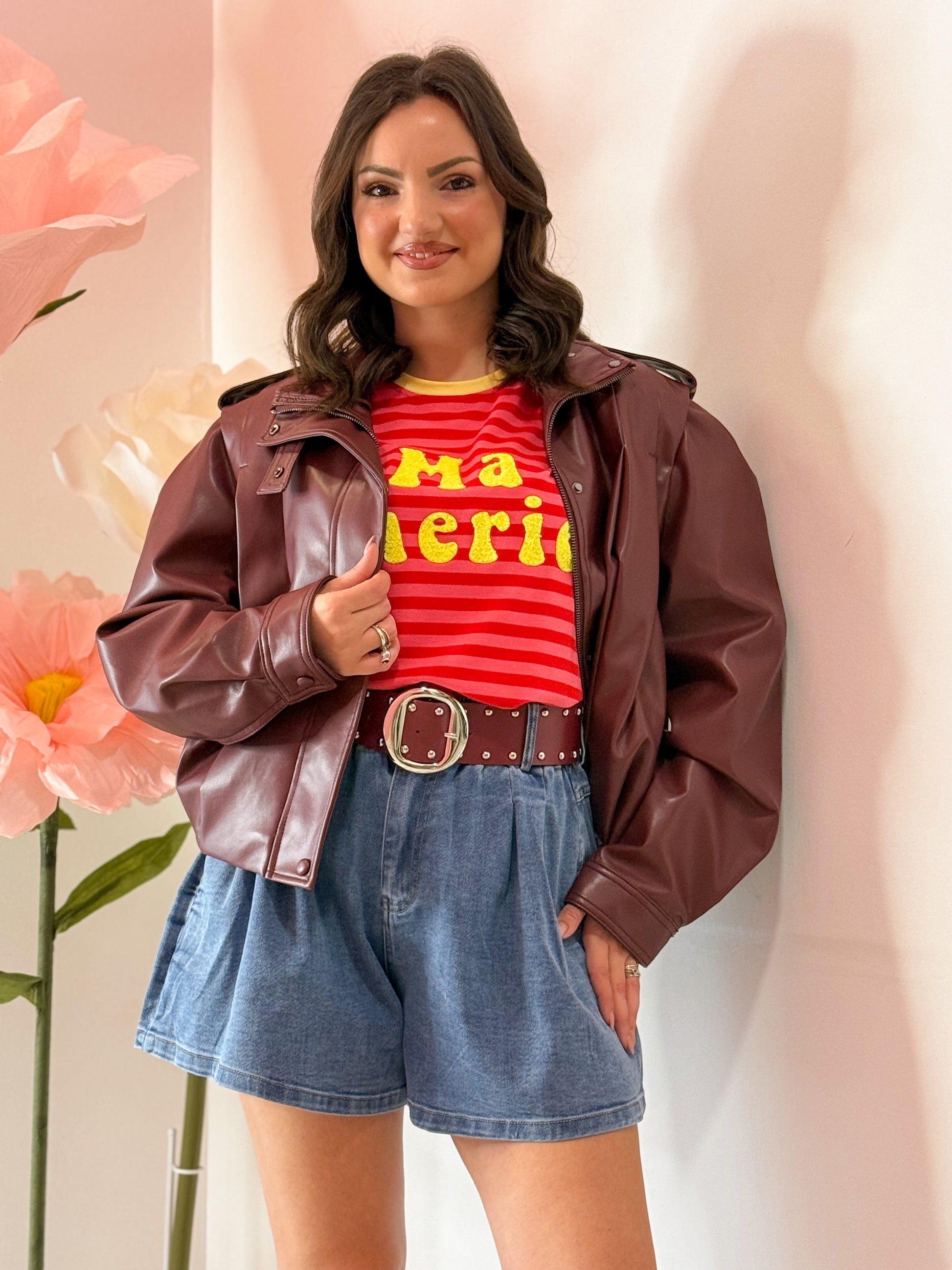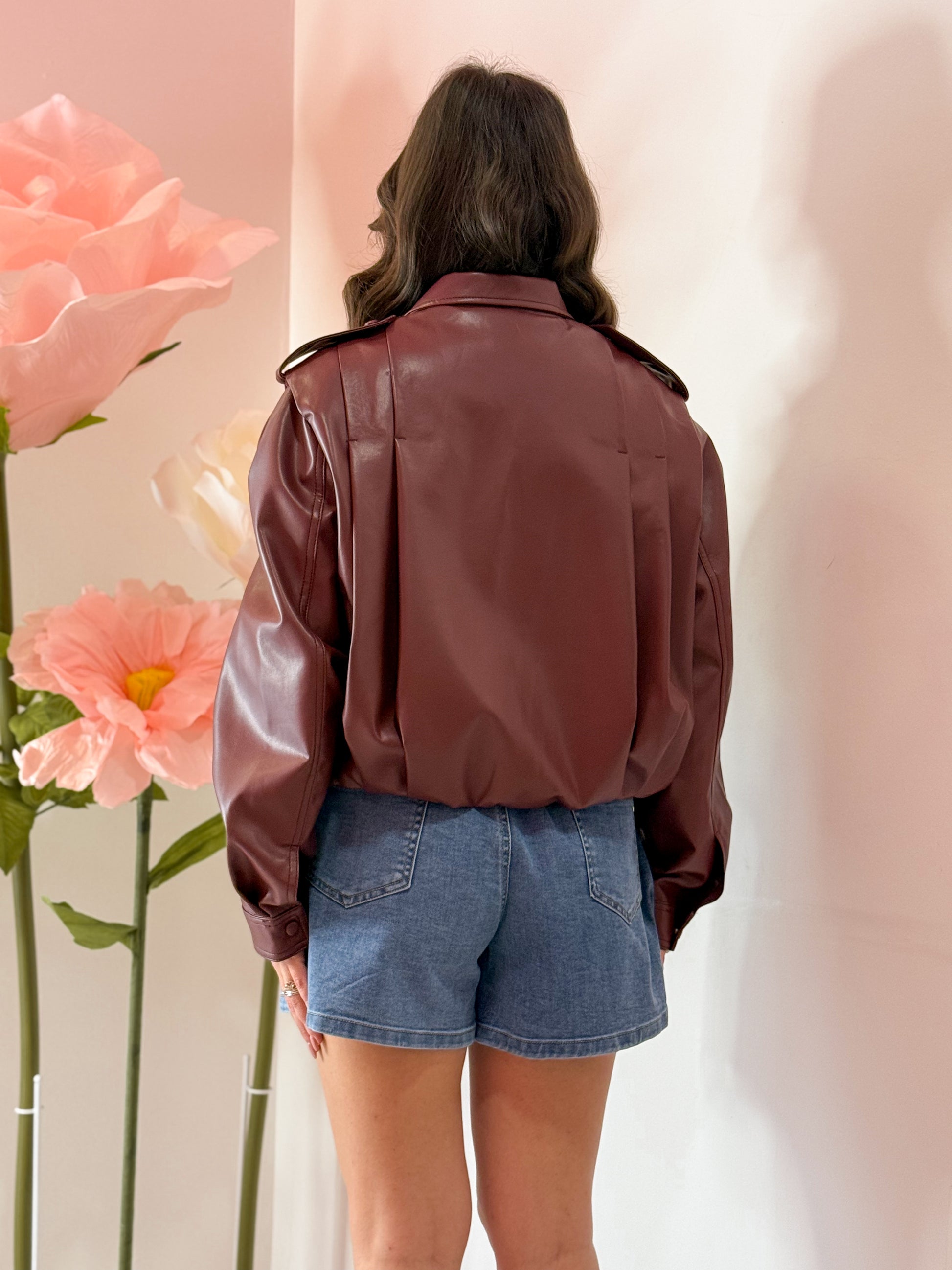 GIUBBINO IN SIMILPELLE , LUNGHEZZA BASIC , FODERATO ALL'INTERNO E CHIUSURA CON ZIP E BOTTONI A CIAPPETTA