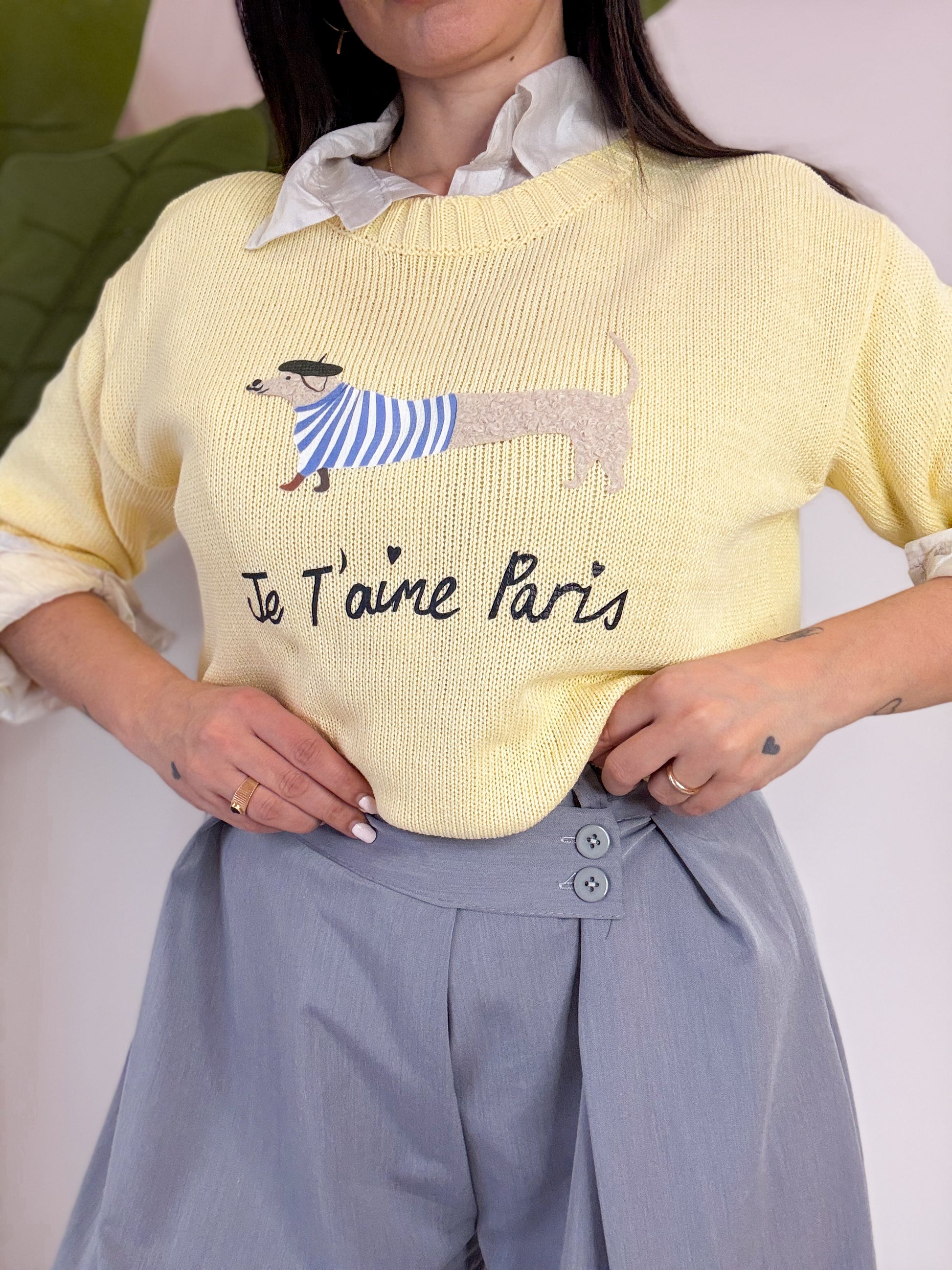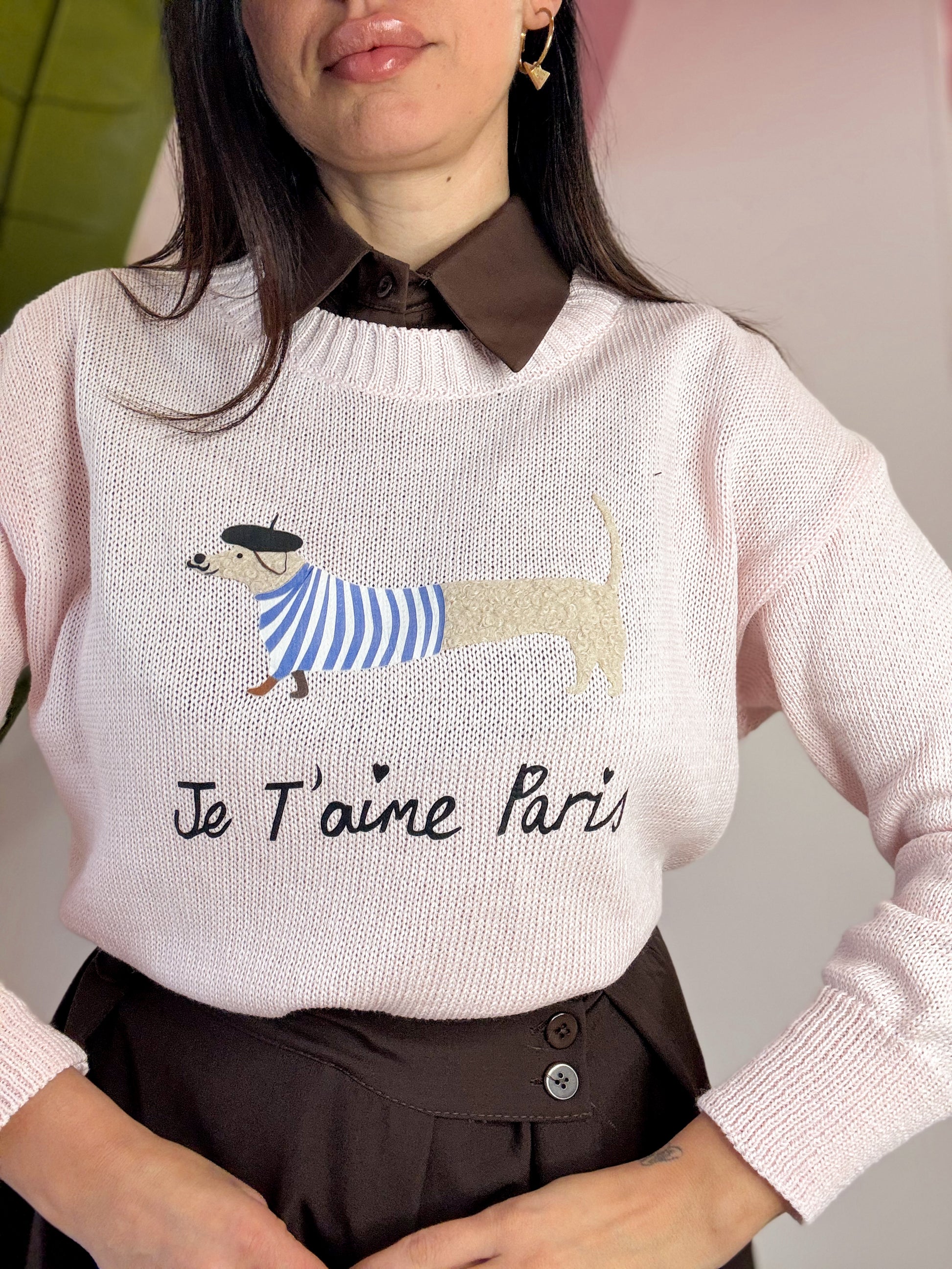 MAGLIA IN FILO , LUNGHEZZA BASIC E GIROCOLLO CON STAMPA BASSOTTO