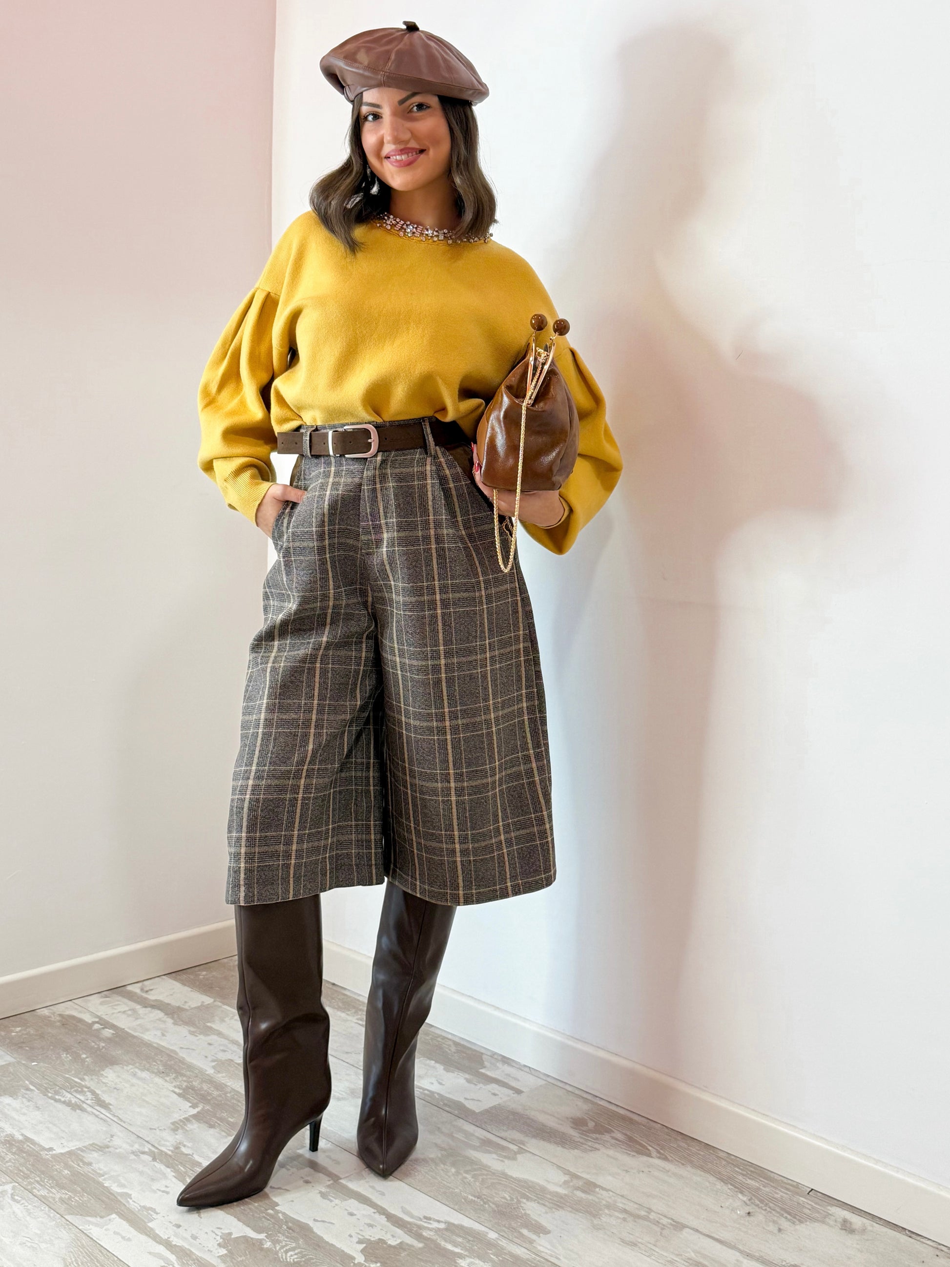 MAGLIONCINO CON APPLICAZIONI DI STRASS CUCITI SUL GIROCOLLO, LUNGHEZZA BASIC E MANICHE A SBUFFO