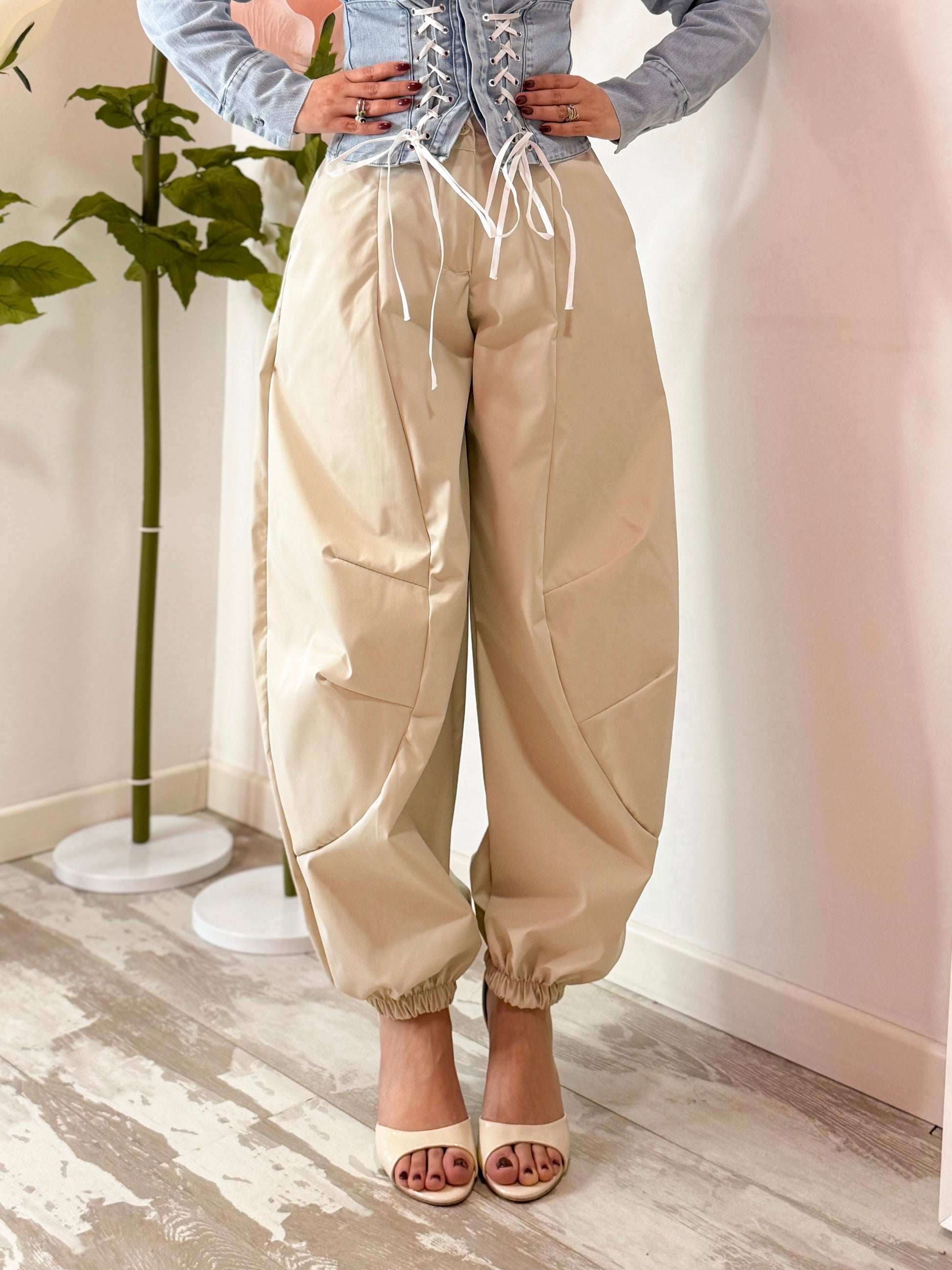 PANTALONE MODELLO PARACHUTE ELASTICO IN VITA E SUL FONDO