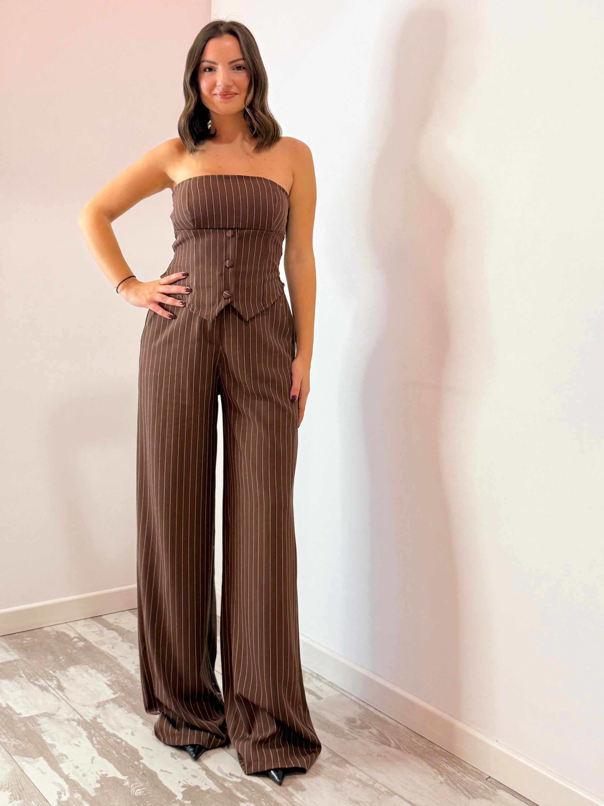 SET COMPOSTO DA TOP A FASCIA CN MOLLA SUL RETRO E PANTALONE PALAZZO CO MOLLA SUL RETRO , TUTTO TAGLIA UNICA VEST E FINO UNA L