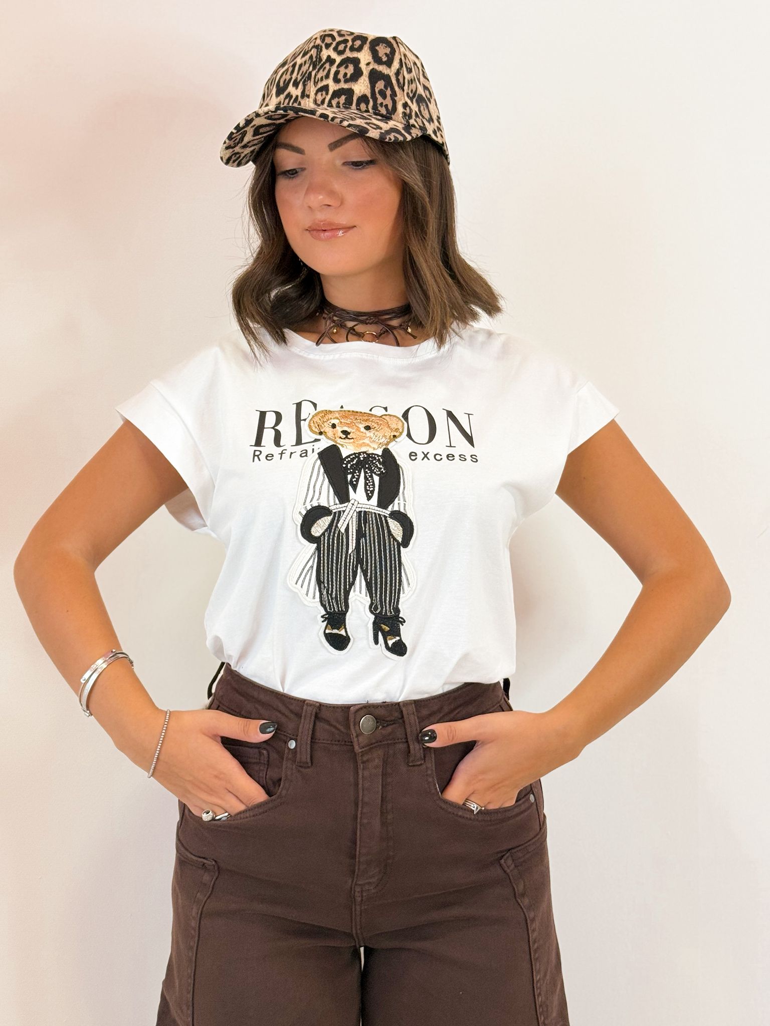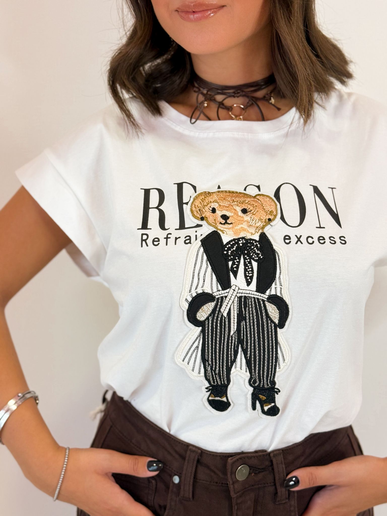T-shirt mezza manica, lunghezza basic con orso in rilievo